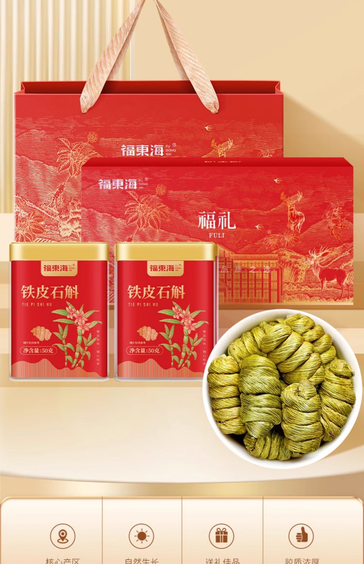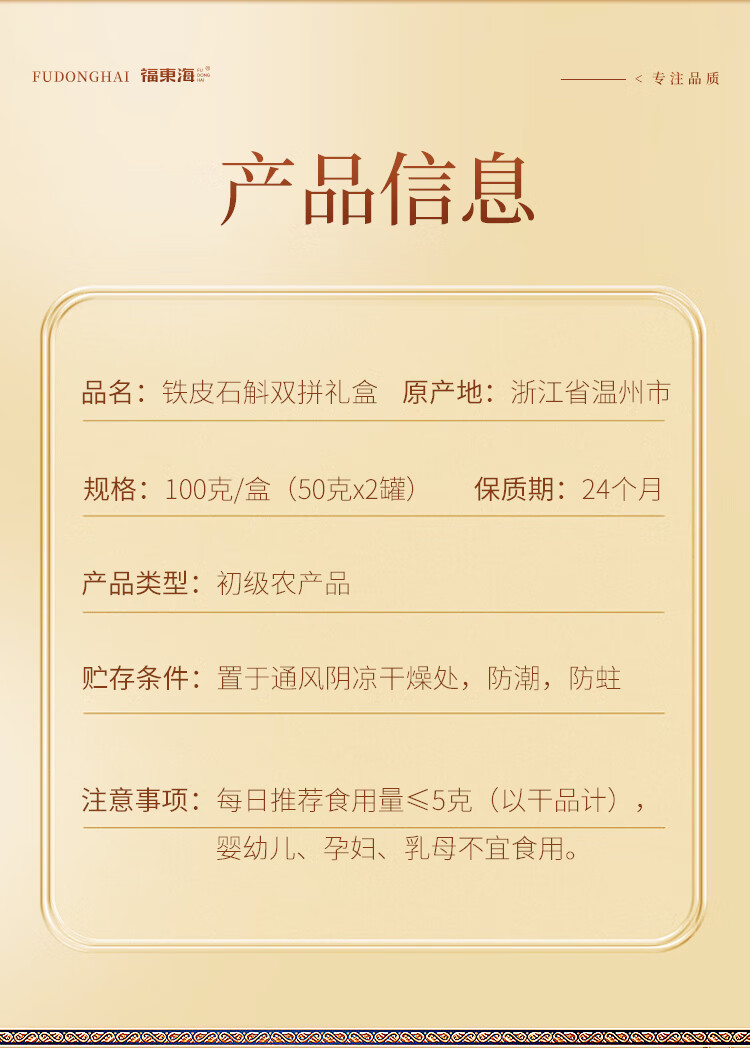 代发【福东海】铁皮石斛100克(50克x2瓶)礼盒(统货1.0-1.2)