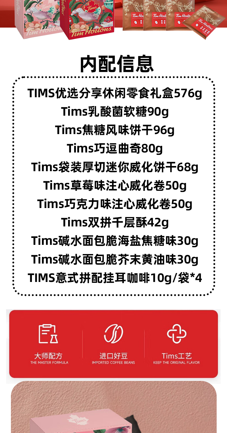 代发自营TIMS天好咖啡优选分享休闲零食礼盒576g