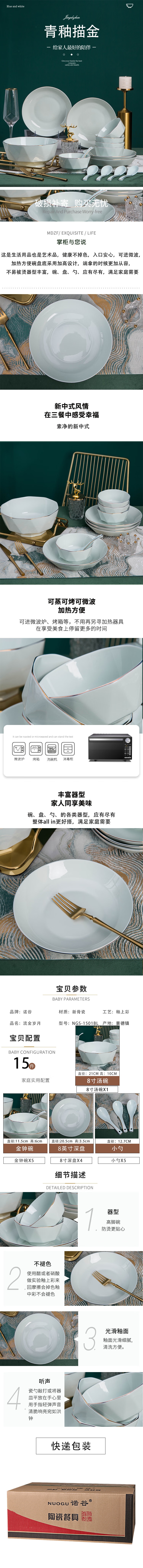 代发NUOGU诺谷流金岁月NGS-1501BL景德镇餐具套装