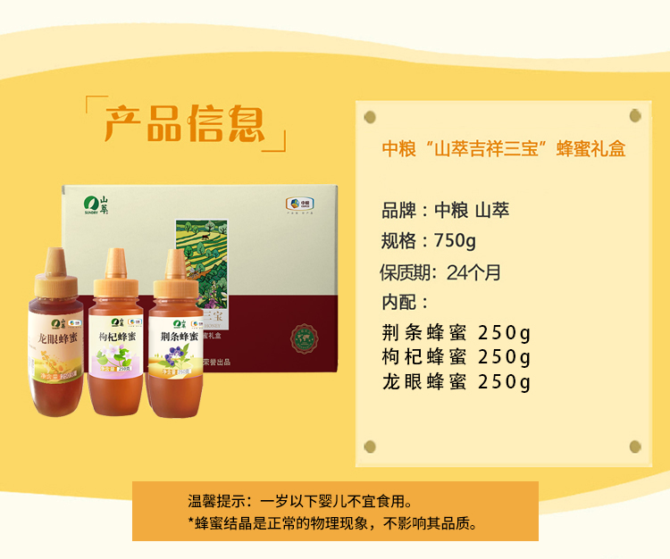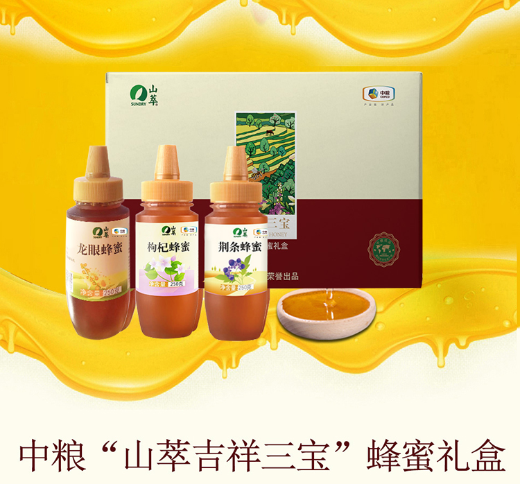 代发中粮山萃吉祥三宝蜂蜜礼盒750g