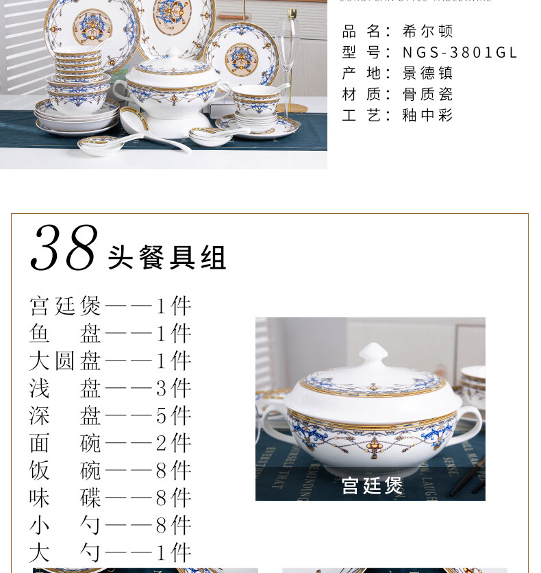 代发NUOGU诺谷希尔顿-38头NGS-3801GL景德镇餐具套装