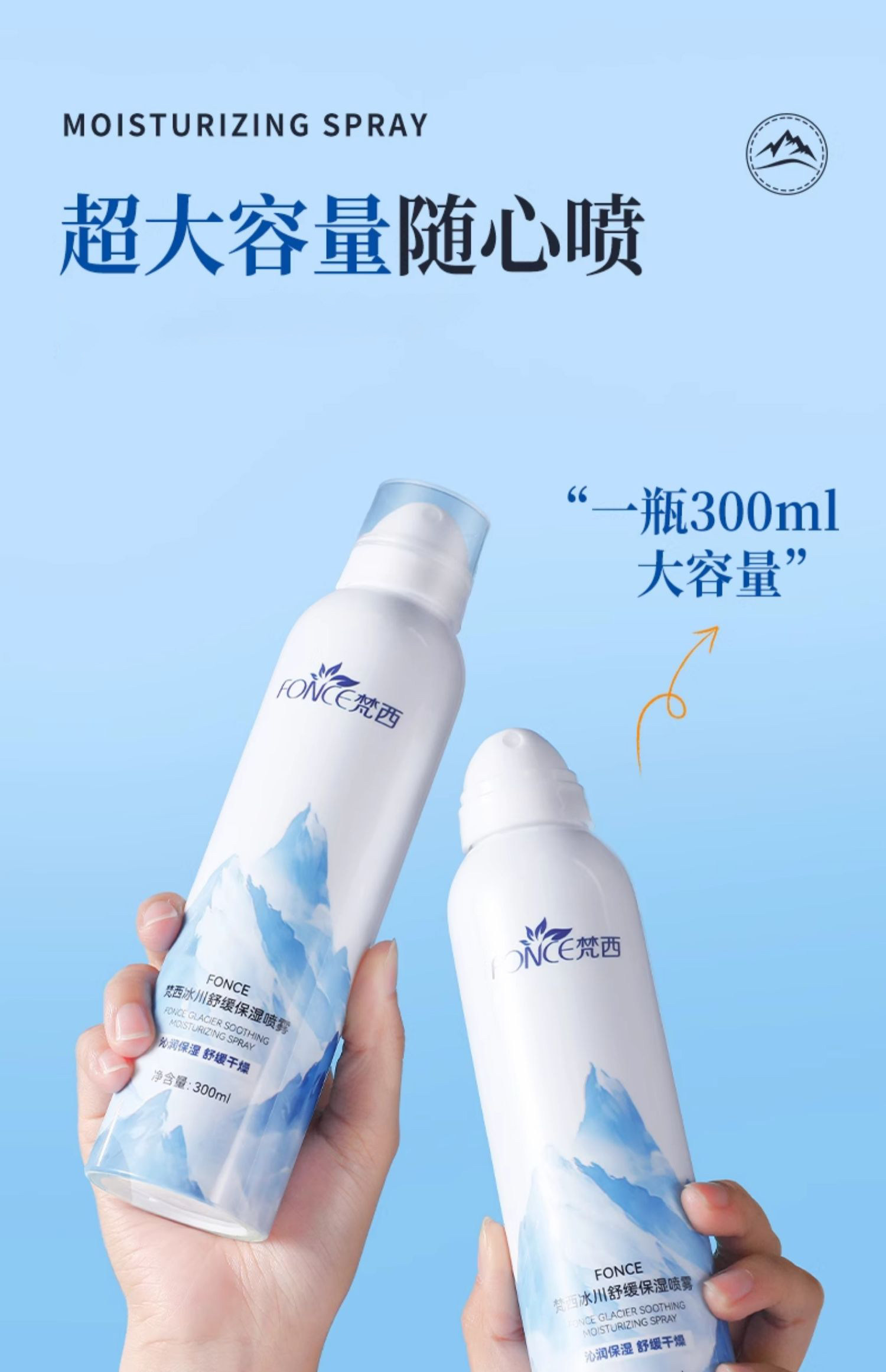 代发梵西FONCE冰川舒缓保湿喷雾300ml舒缓修护水爽肤水