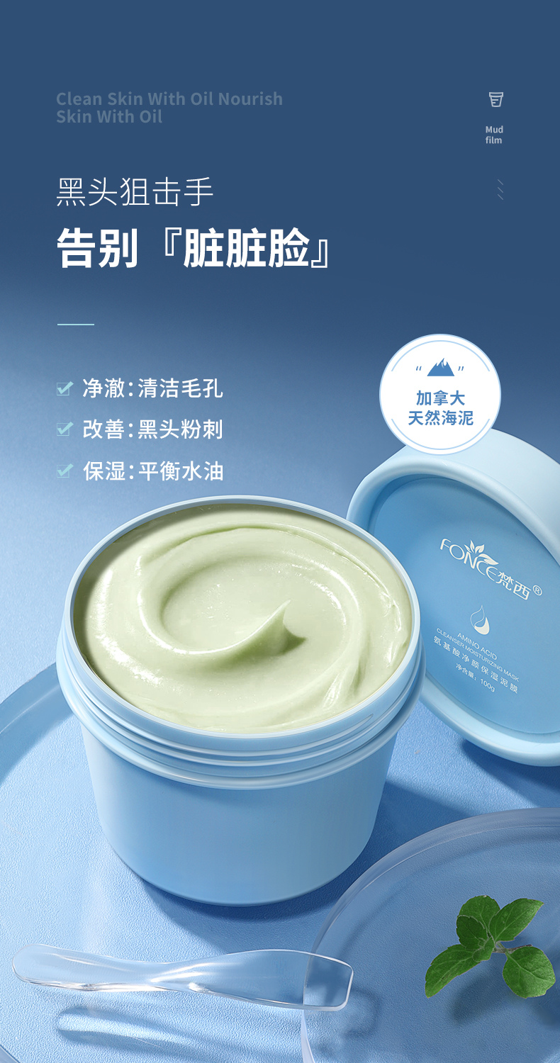 代发梵西FONCE氨基酸净颜保湿泥膜100g/瓶深层清洁去黑头粉刺收缩毛孔控油涂抹式泥膜