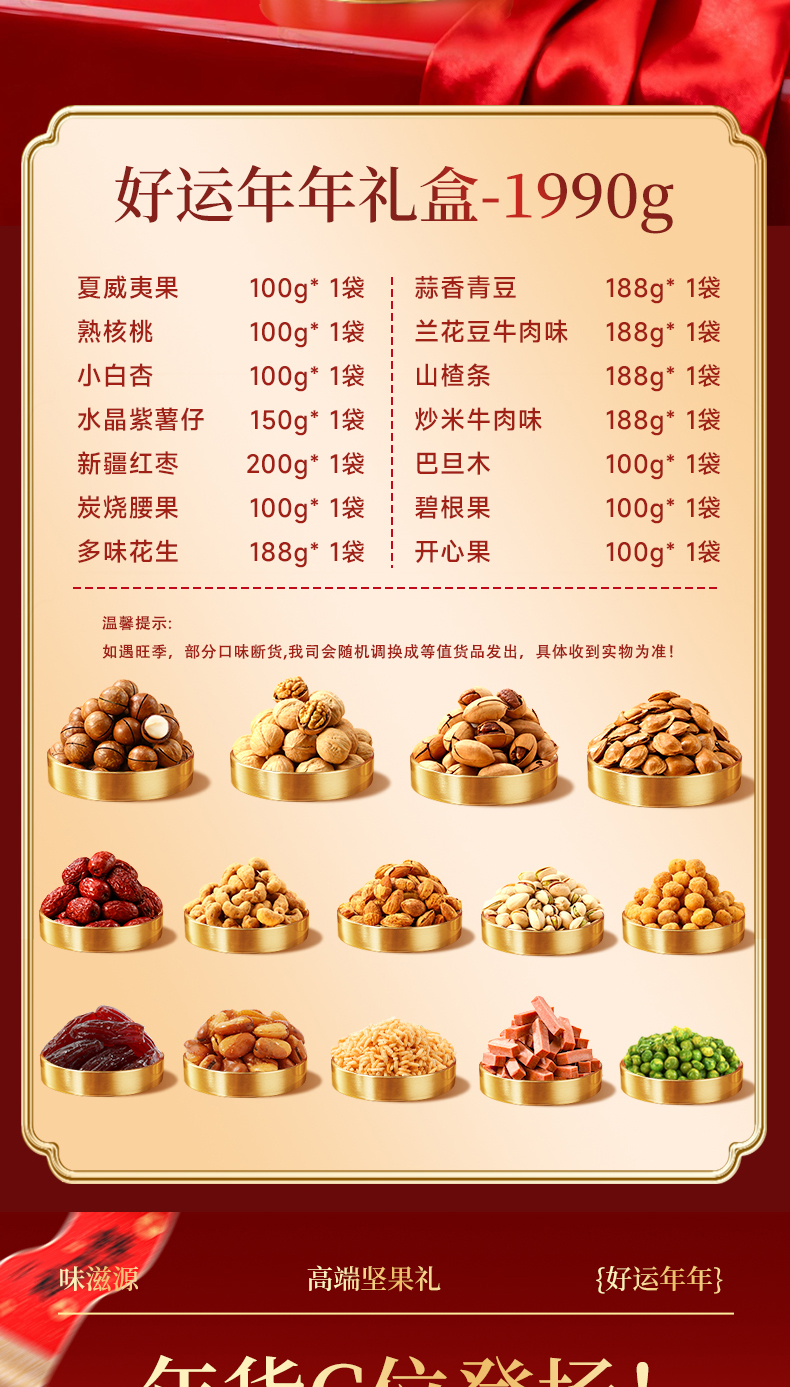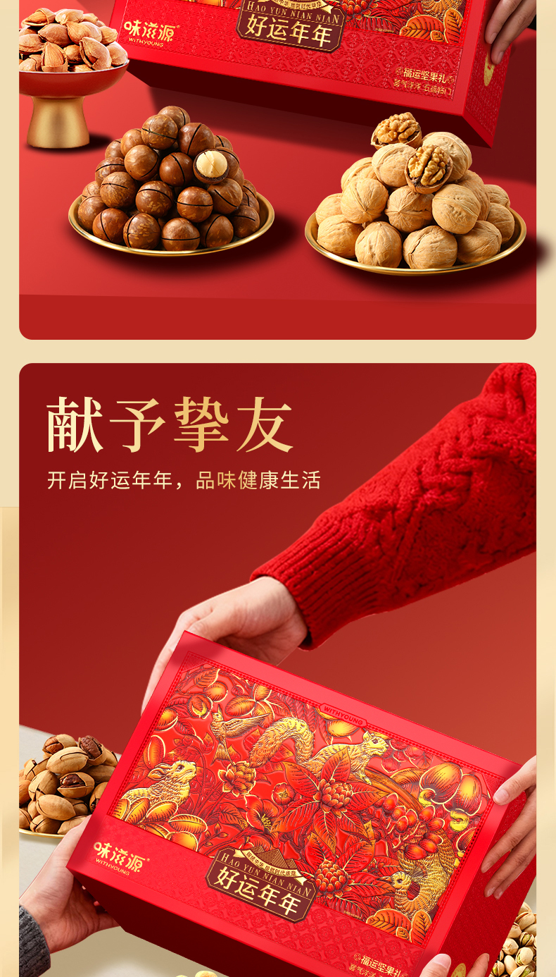 当前位置:首页 > 食品饮料 > 休闲食品 > 坚果礼盒 > 味滋源 好运连连 福运坚果礼盒 1990g