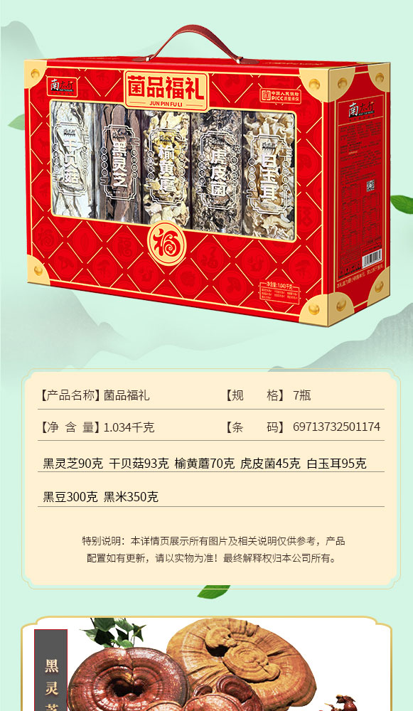 代发南太行 菌品福礼1.043kg菌菇礼盒灵芝煲汤