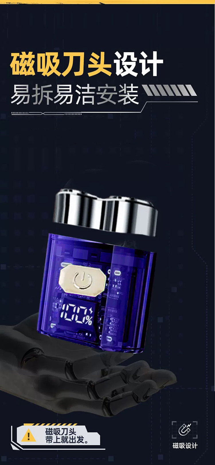 代发上亨SHZH-001迷你磁吸电动剃须刀