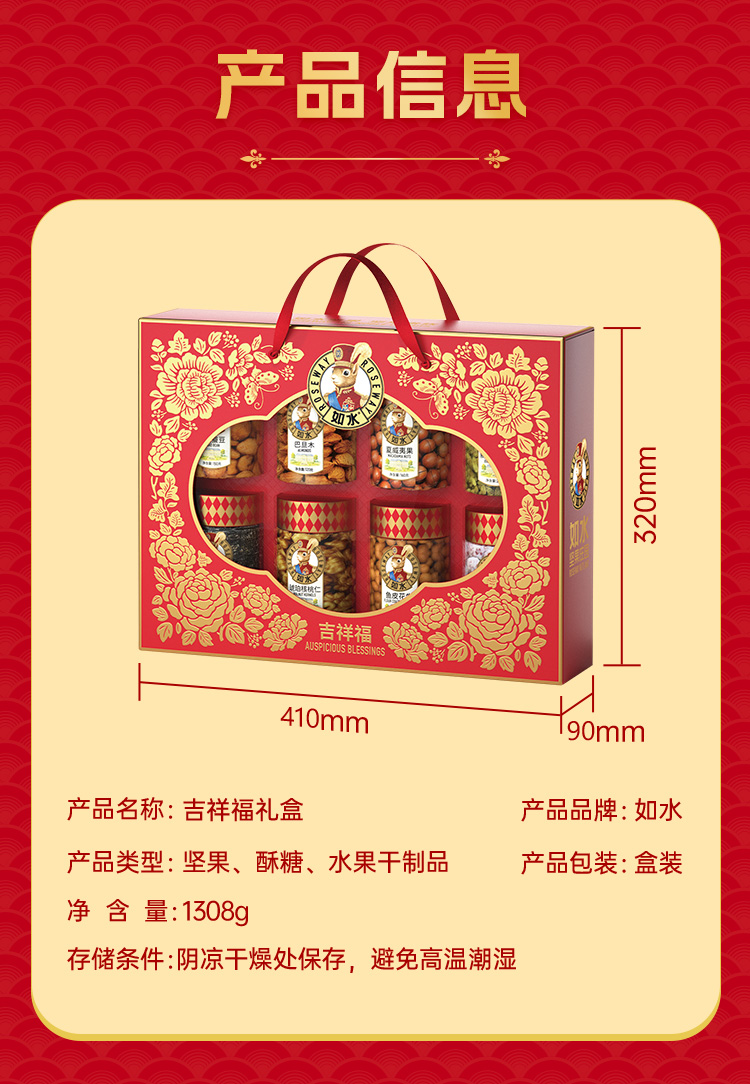 当前位置:首页 > 食品饮料 > 休闲食品 > 坚果礼盒 > 如水吉祥福礼盒1308g
