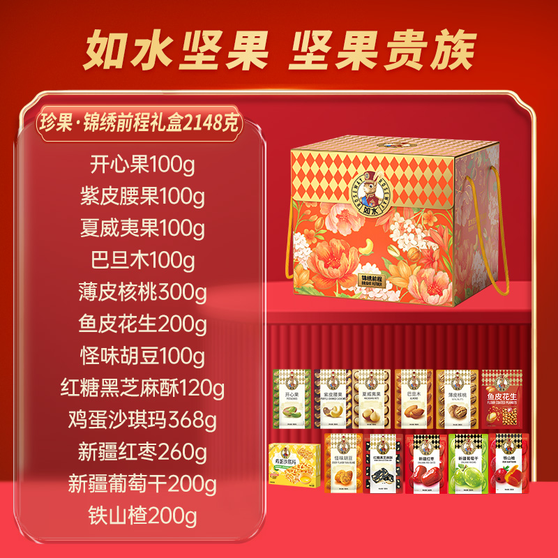 当前位置:首页 > 食品饮料 > 休闲食品 > 坚果礼盒 > 如水珍果·锦绣前程礼盒2148g