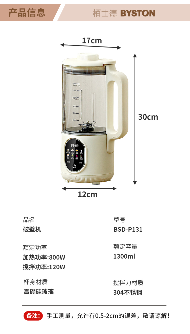 代发栢士德BYSTON破壁机BSD-P131