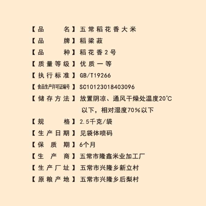 荐代发稻梁菽 五常稻花香大米 中国年2.5kg