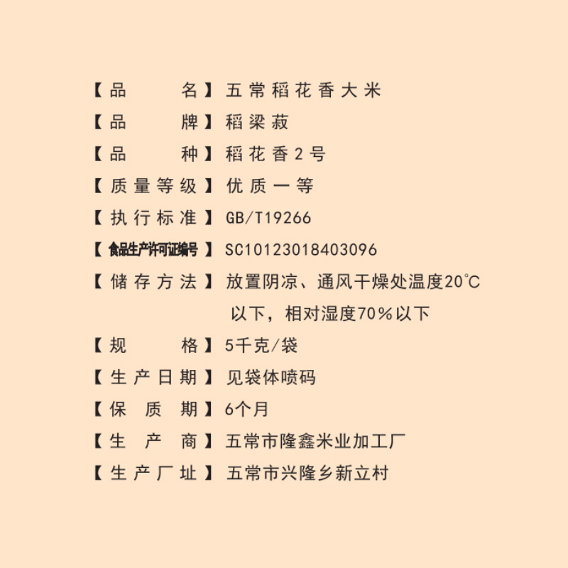 荐代发稻梁菽 五常稻花香大米中国年5kg