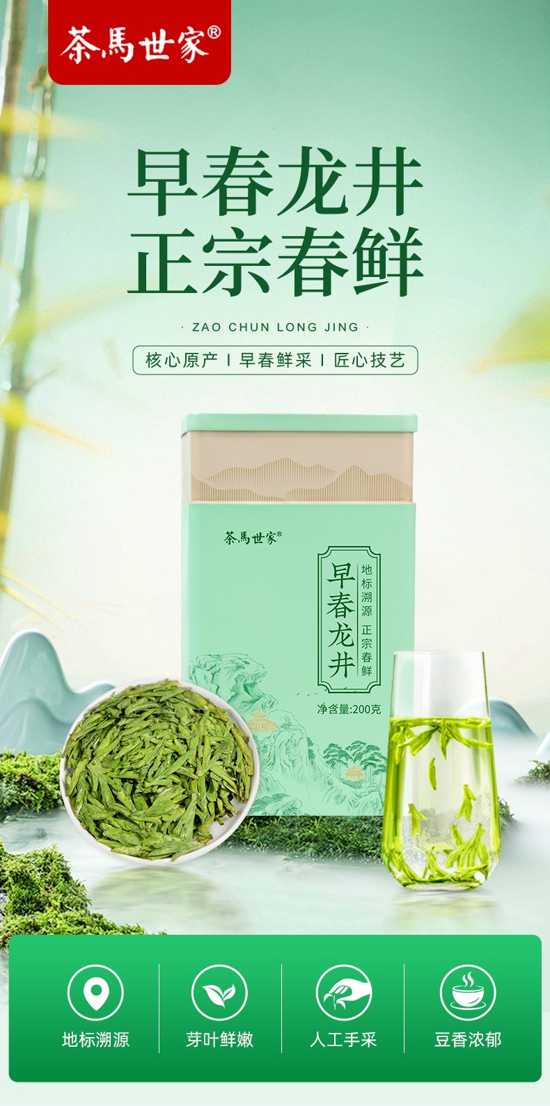 代发自营茶马世家龙井一级单铁罐装200g