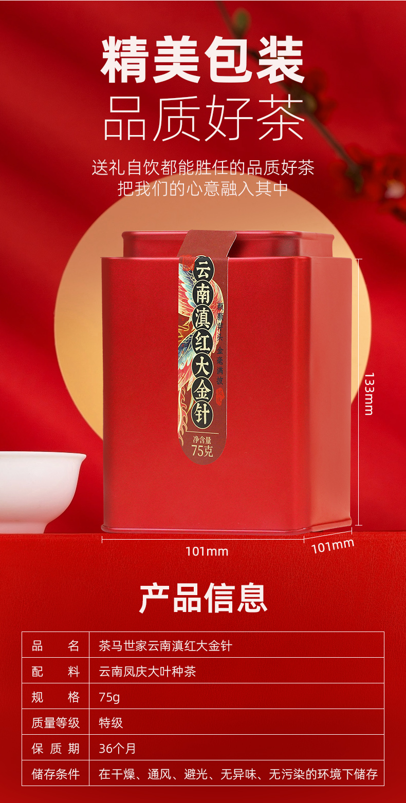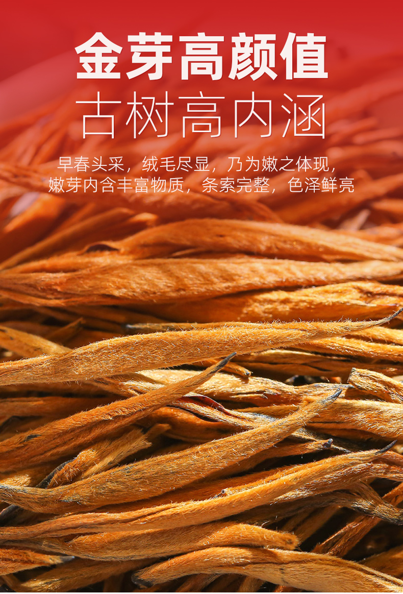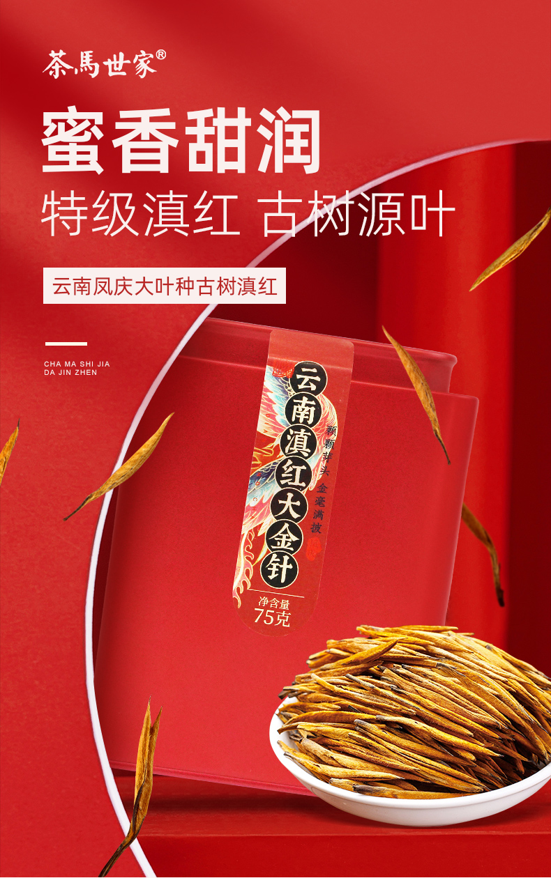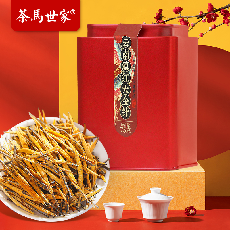 代发自营茶马世家云南特级古树滇红茶大金针罐装75g