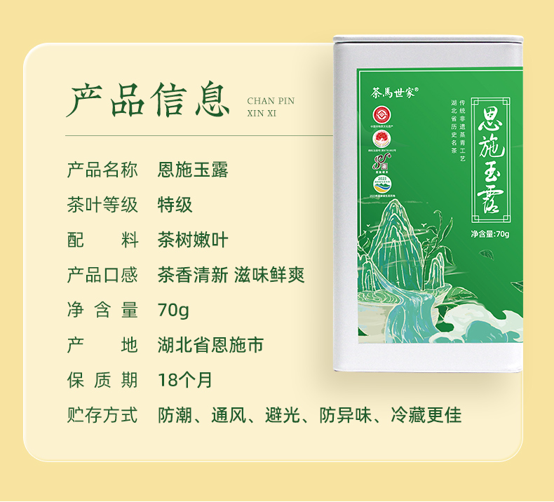 茶马世家恩施玉露头采特级罐装品质款70g