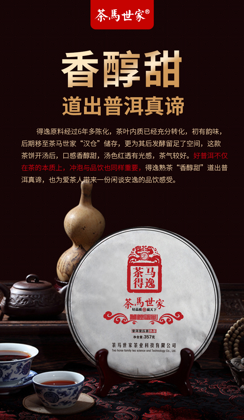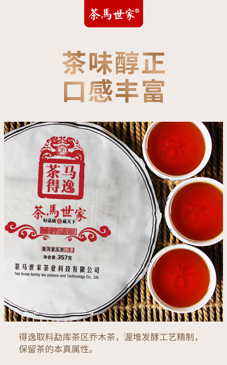 代发自营茶马世家得逸普洱熟茶饼茶357g