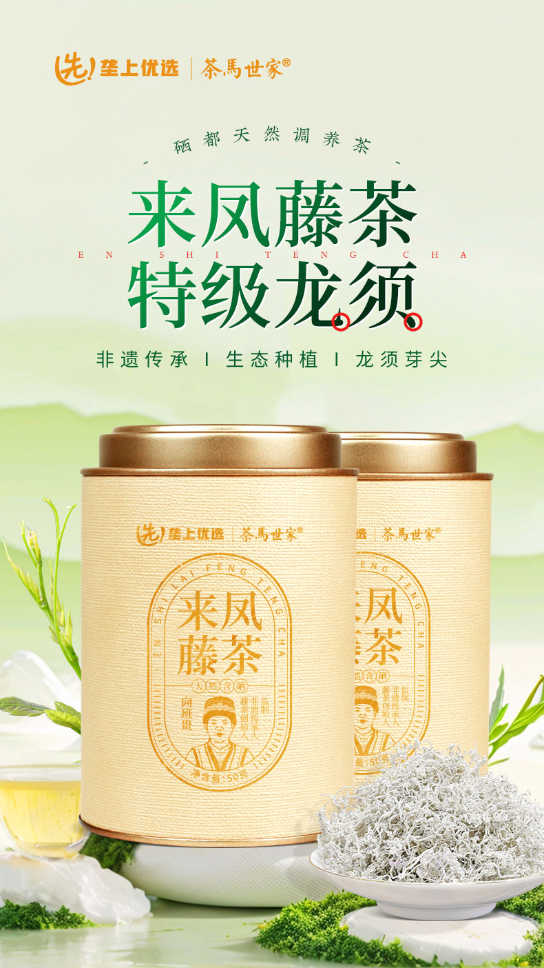 代发自营茶马世家特级恩施藤茶罐装50g*2罐