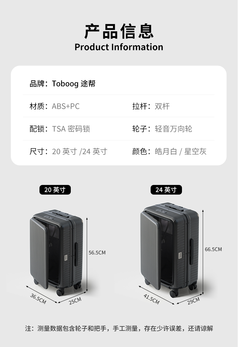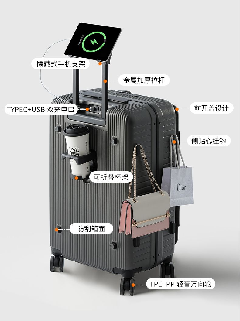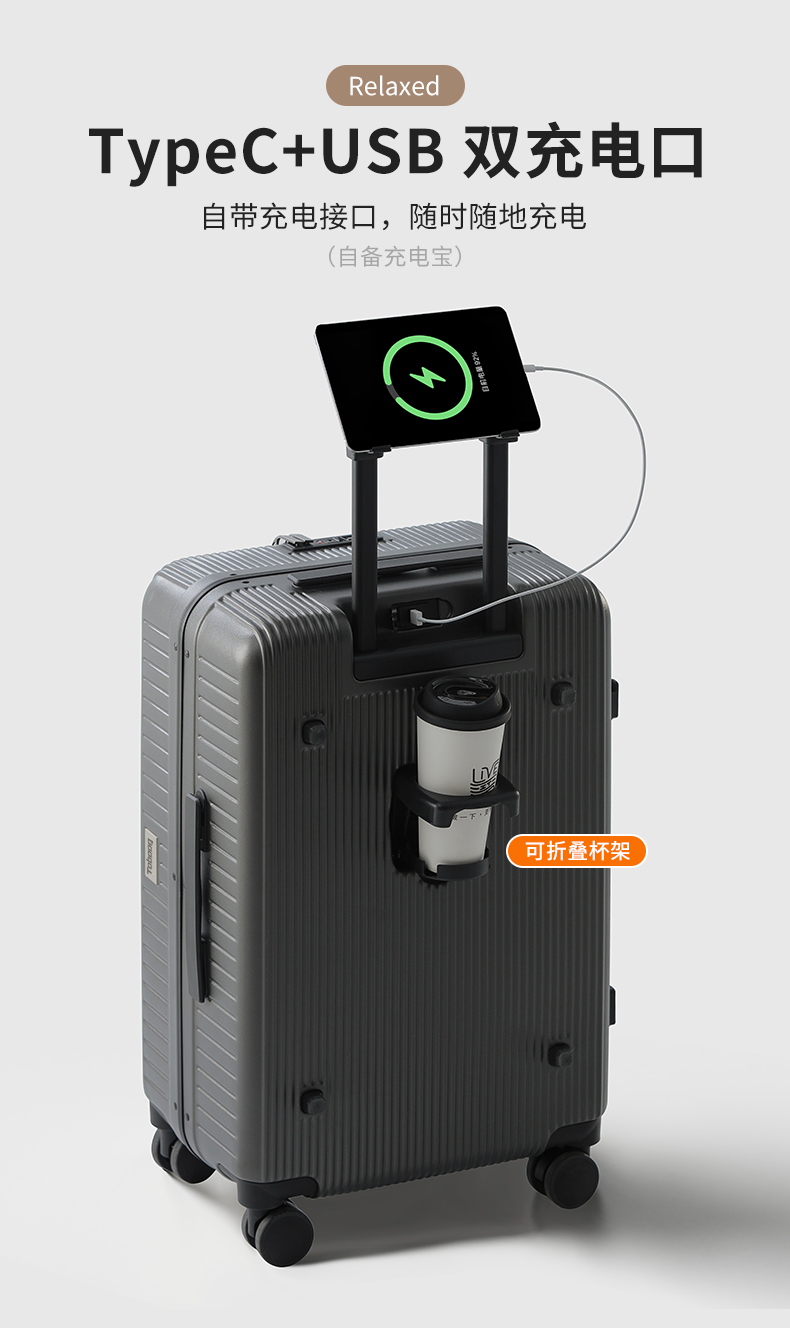 代发途帮(TOBOOG)新前开盖TypeC+USB双充电口旅行箱3012 24寸