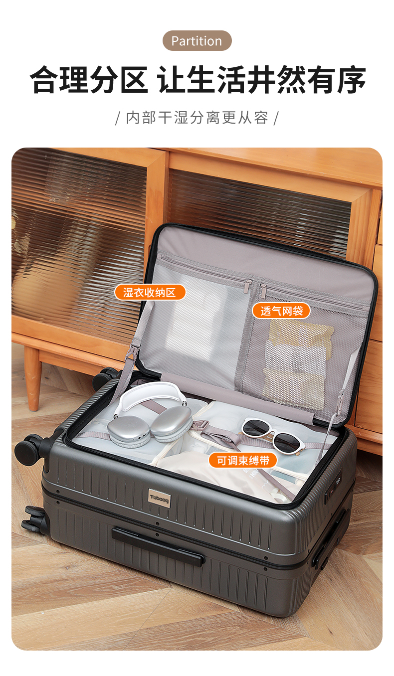 当前位置:首页 > 箱包服饰 > 功能箱包 > 行李箱/拉杆箱 > 途帮(TOBOOG)新前开盖TypeC+USB双充电口旅行箱3012 24寸