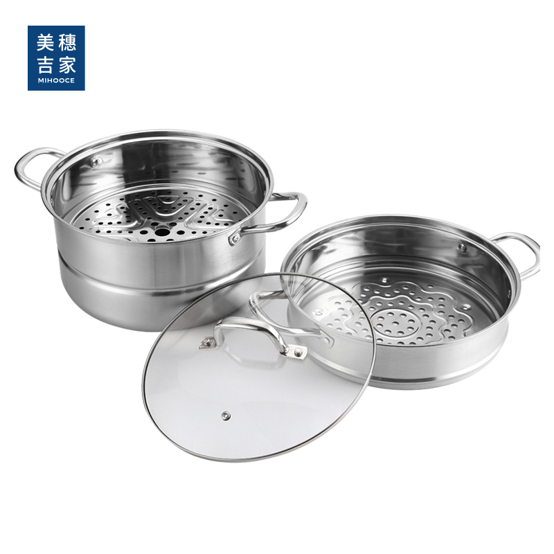 当前位置:首页 > 杯壶厨具 > 烹饪锅具 > 蒸锅 > 美穗吉家 大容量不锈钢两层多用蒸锅28cm型号:MIH-2501027