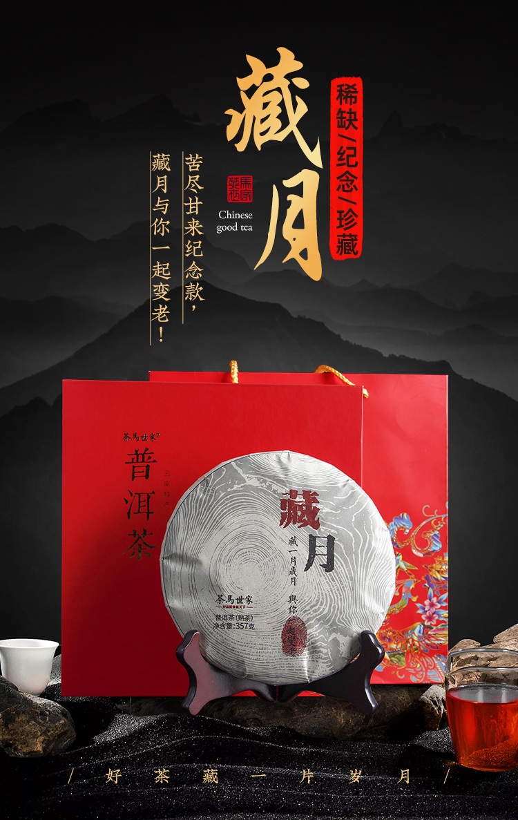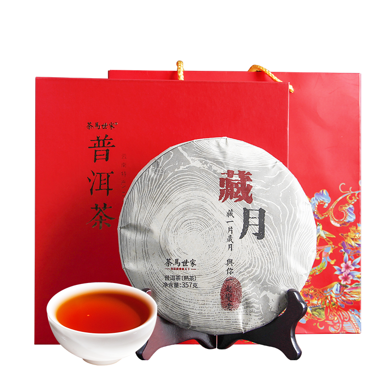 代发自营茶马世家藏月普洱熟茶饼茶礼盒装357g