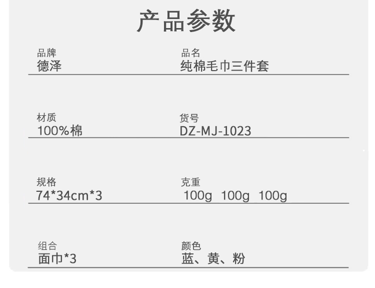 代发德泽纯棉毛巾三件套DZ-MJ-1023