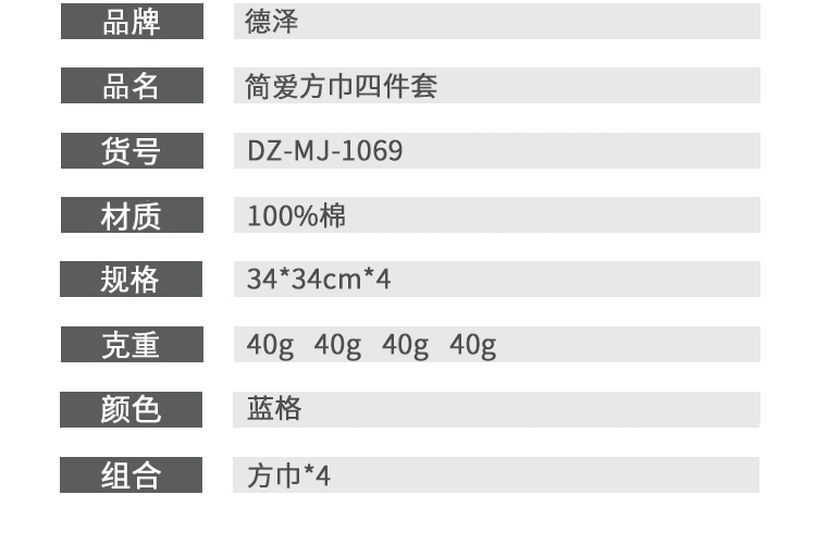 代发德泽简爱方巾四件套(方巾*4)DZ-MJ-1069