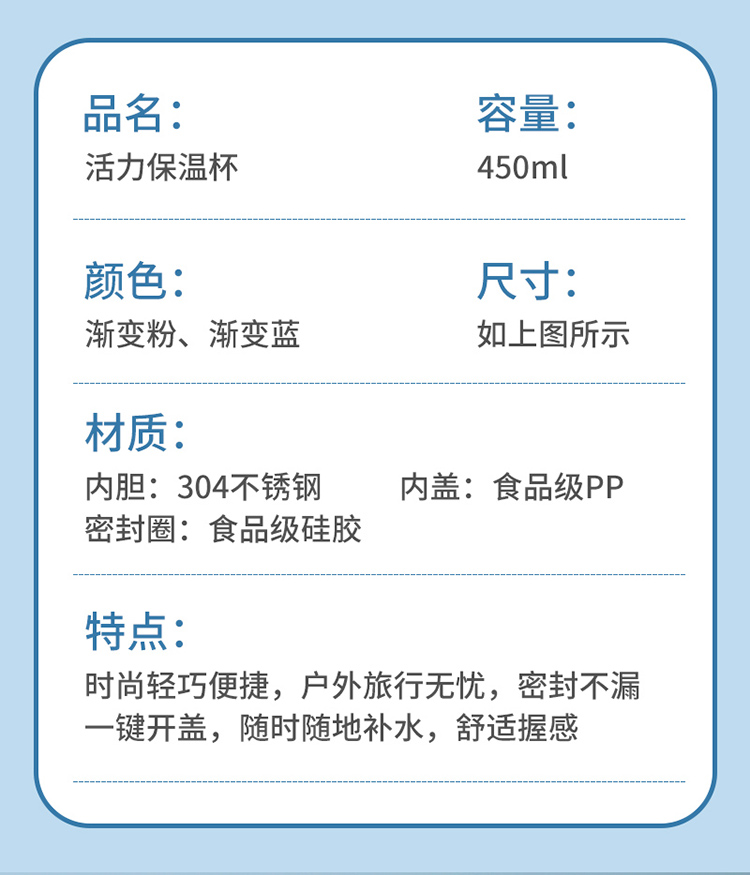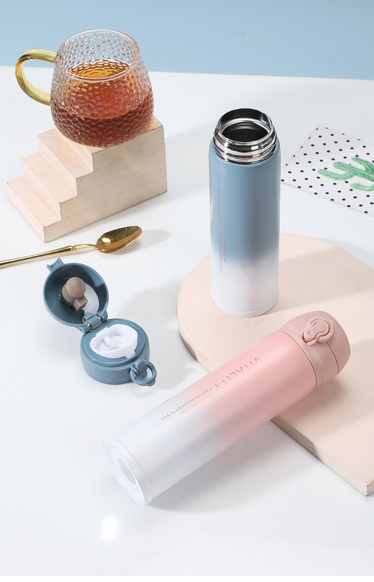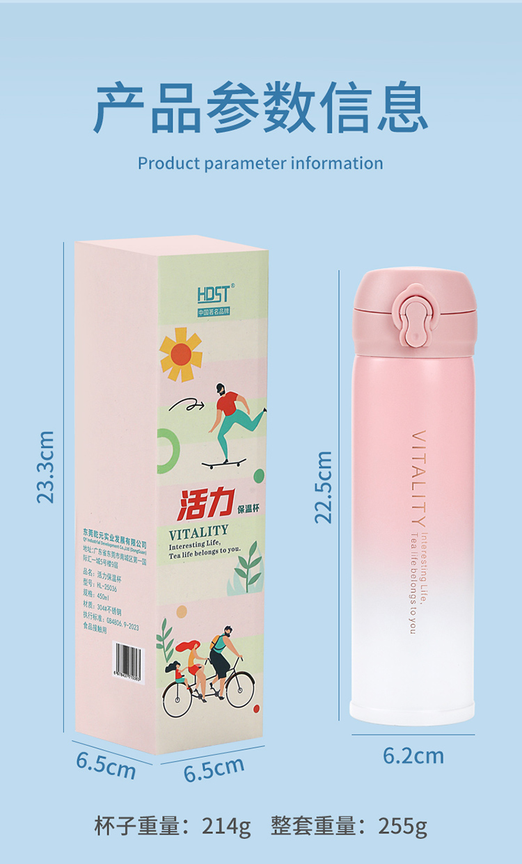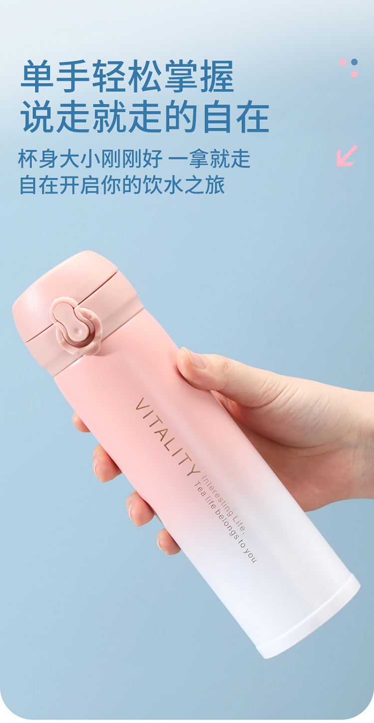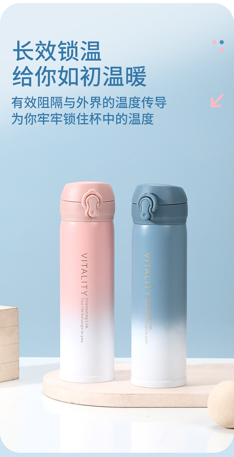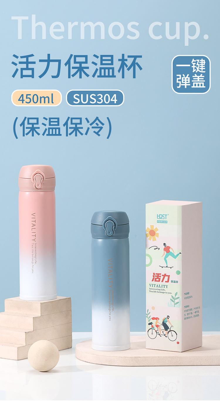 代发华典世通HDST 活力保温杯弹跳盖不锈钢水杯 304不锈钢保温杯 渐变水杯 304不锈钢水杯