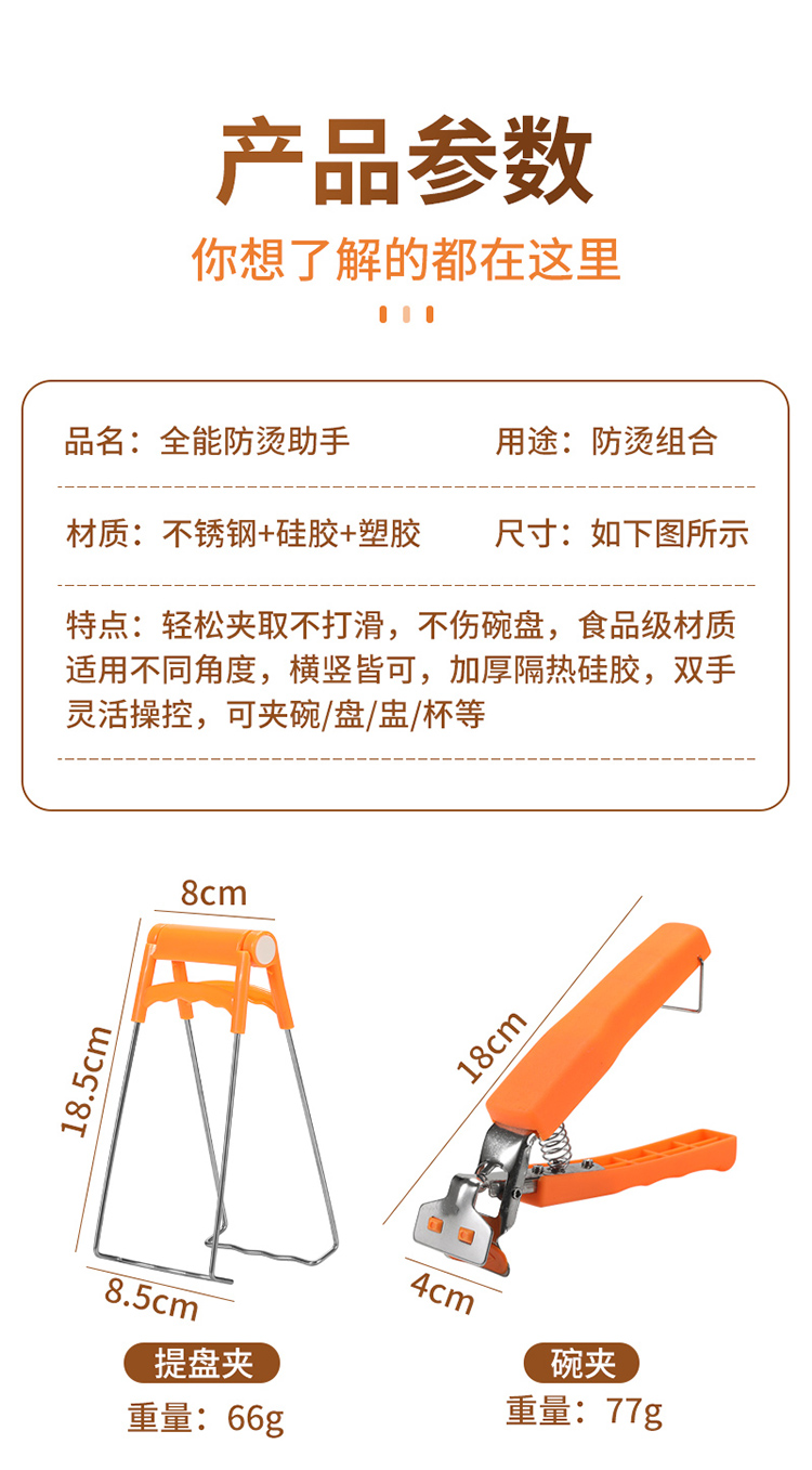 代发华典世通HDST 全能防烫助手 多功能防烫夹碗夹厨房小工具套装硅胶垫食品夹