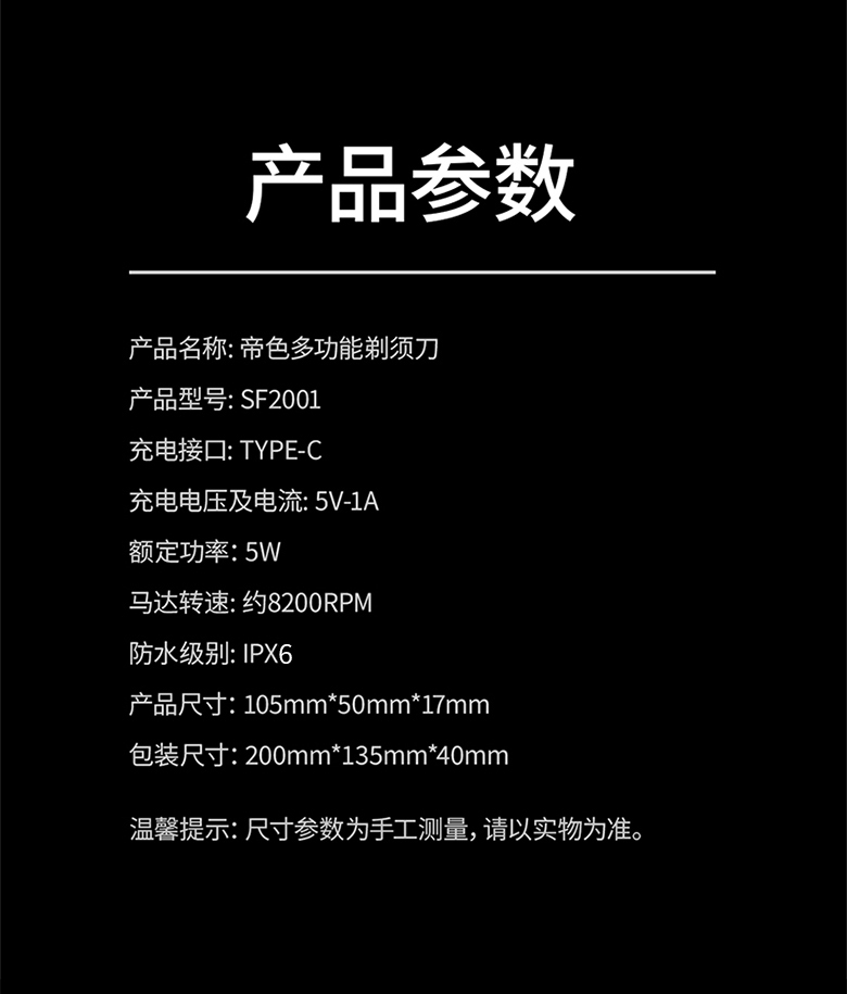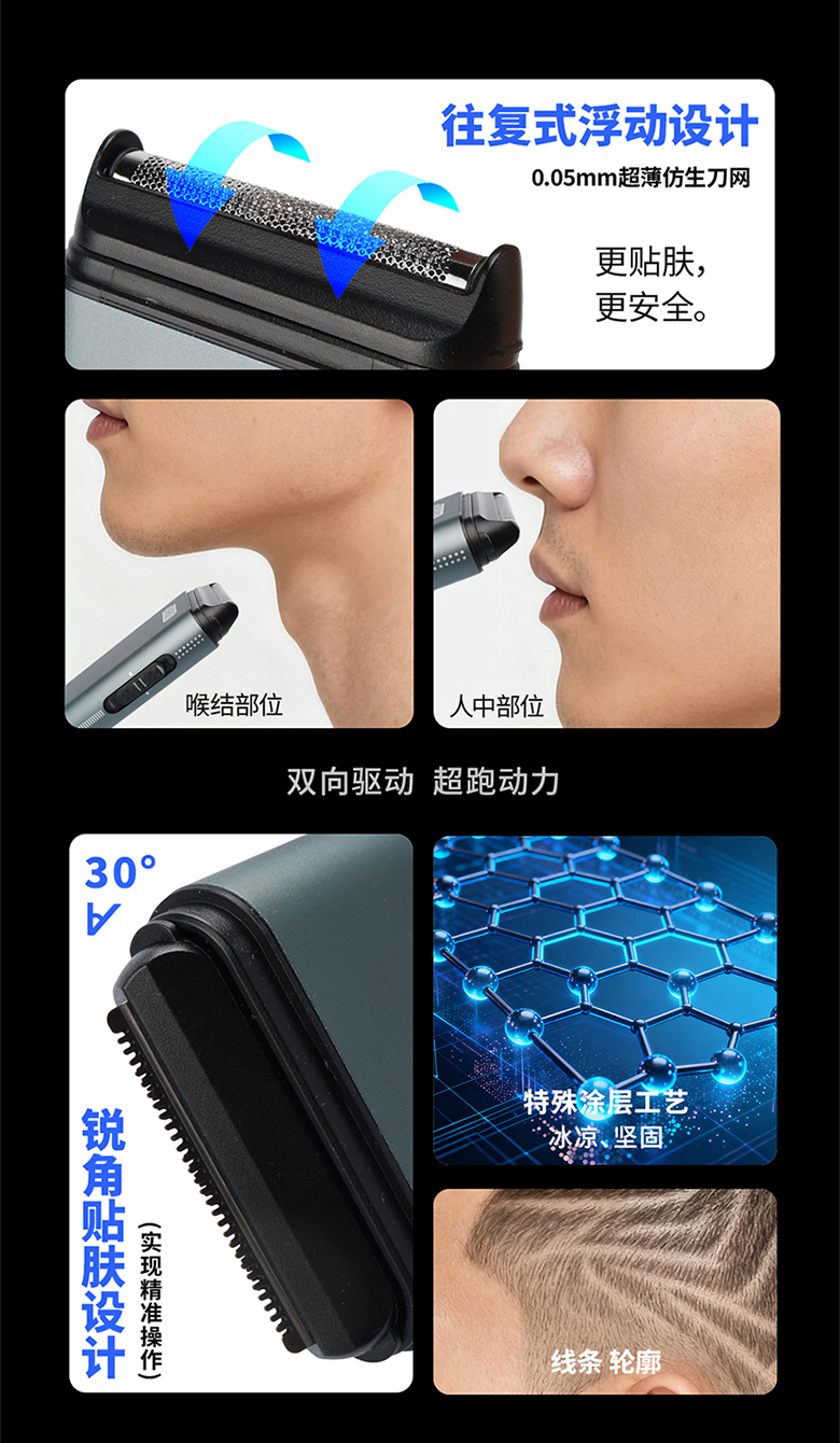 代发DIXIX帝色往复式电动剃须刀双刀头干湿两剃水洗可修鬓角拉花造型长续航刮胡刀剃须刀SF2001