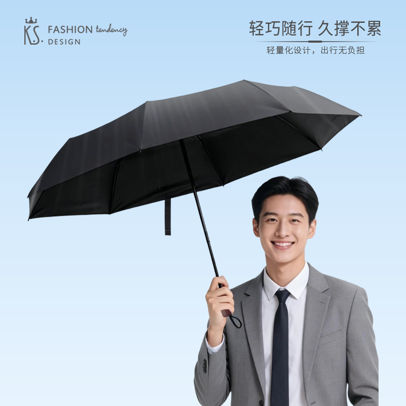 源头K.S.风度客三折黑胶晴雨伞KS-1082