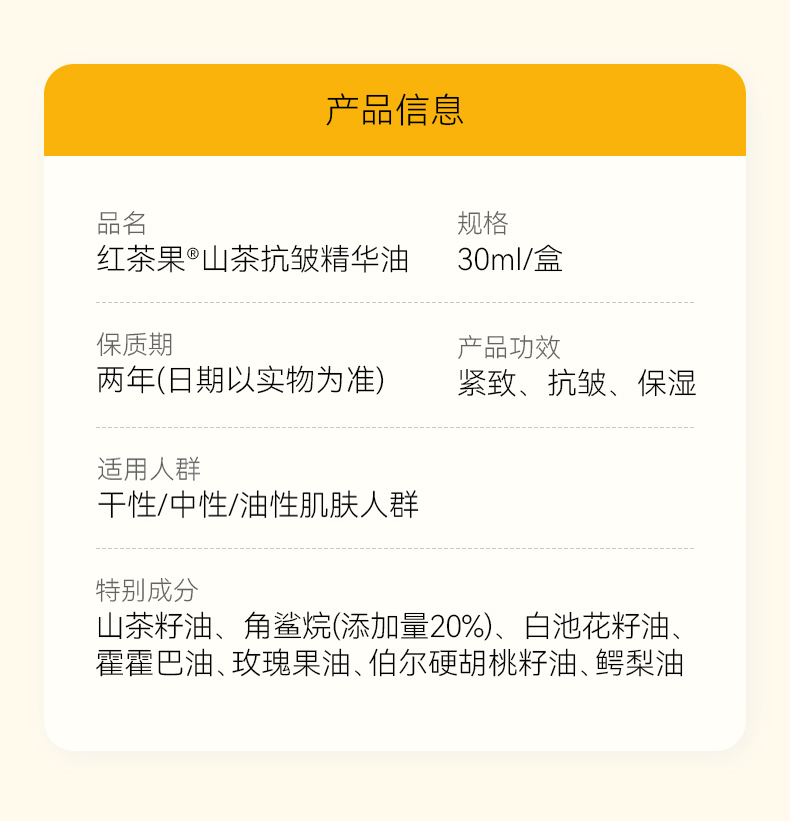 源头红茶果山茶抗皱精华油30ml