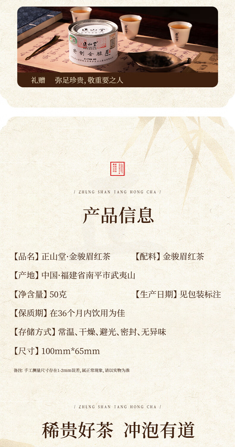 荐代发正山堂红茶 武夷山桐木关金骏眉特级50g罐装