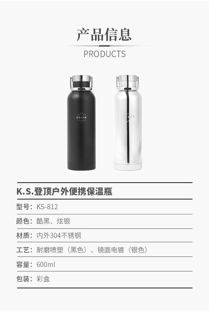 源头K.S.登顶户外便携保温瓶KS-812