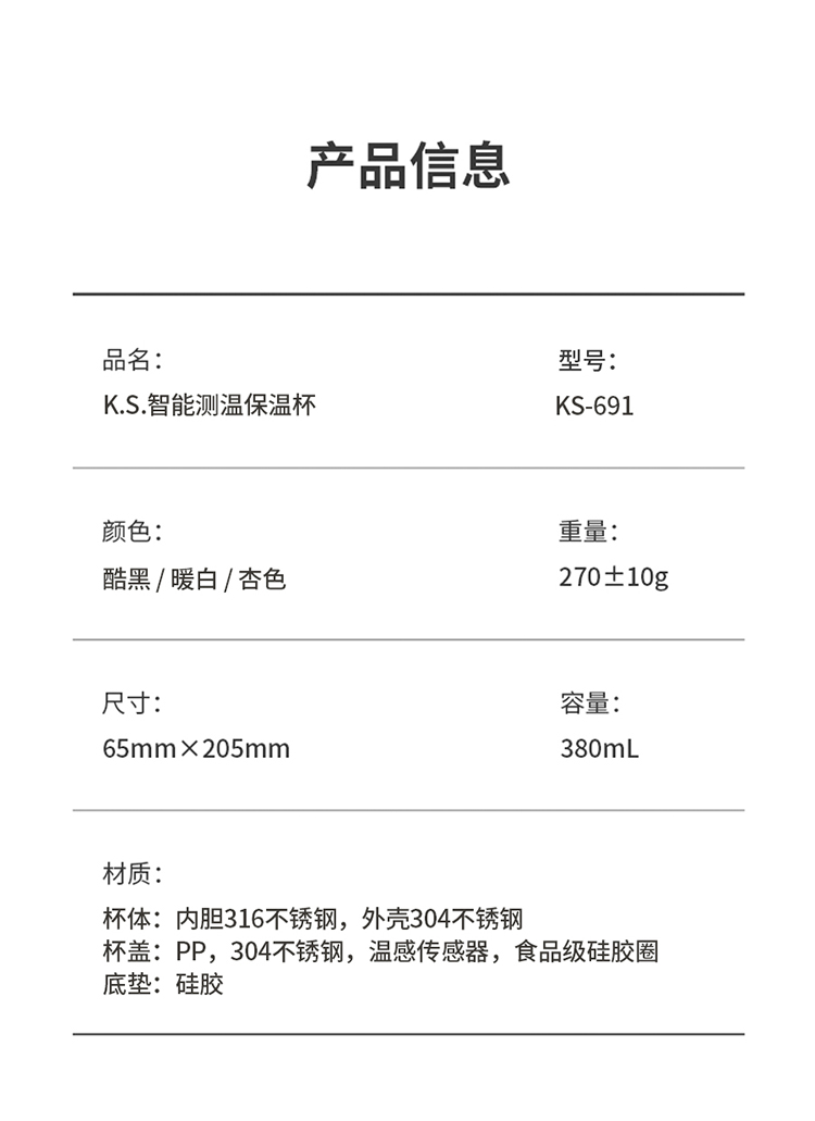 源头K.S.智能测温保温杯KS-691