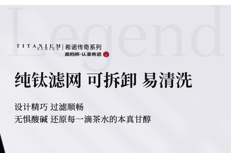 当前位置:首页 > 杯壶厨具 > 杯壶水具 > 保温杯 > 希诺(heenoor)纯钛保温杯男女士高档焖茶杯茶水分离大容量泡茶水杯商务办公礼品 【传奇系列】XN-T901L