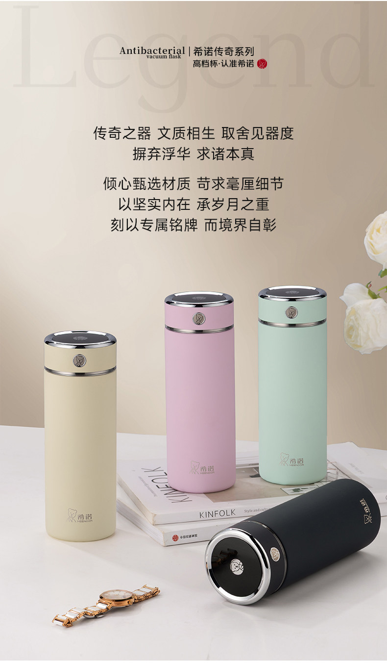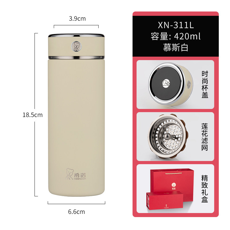 代发希诺(heenoor)保温杯男士大容量抗菌简约带滤网泡茶办公杯子便携家用泡茶水杯 【传奇系列】XN-311L