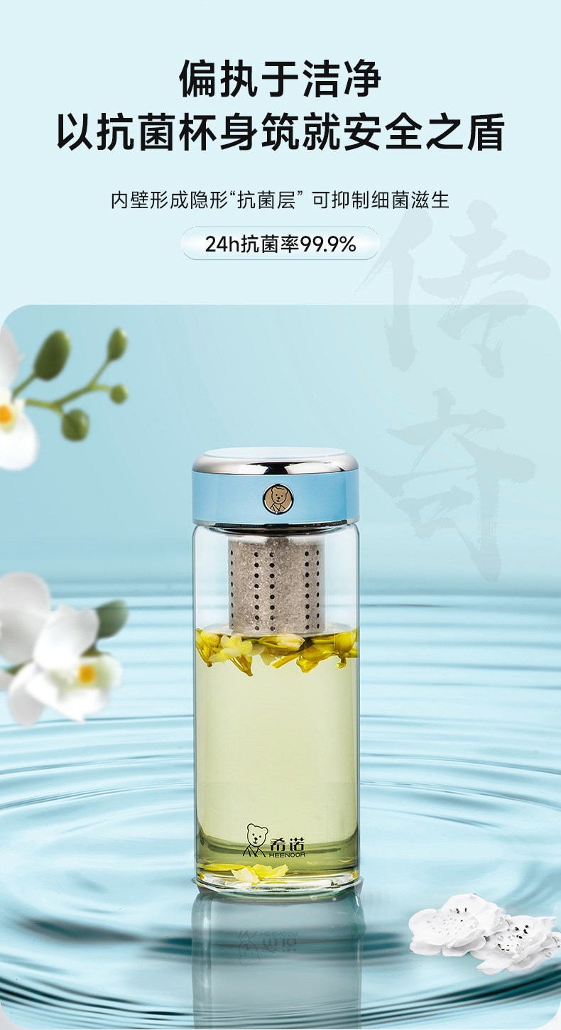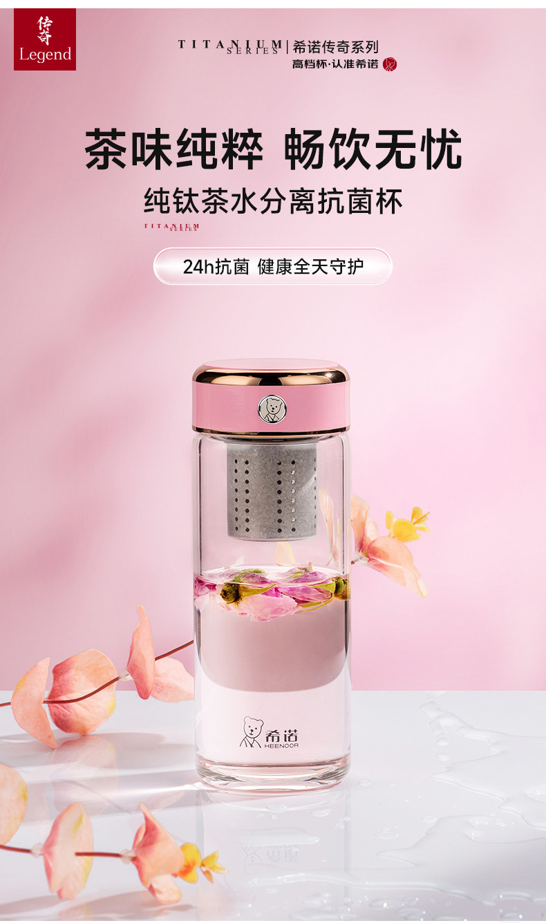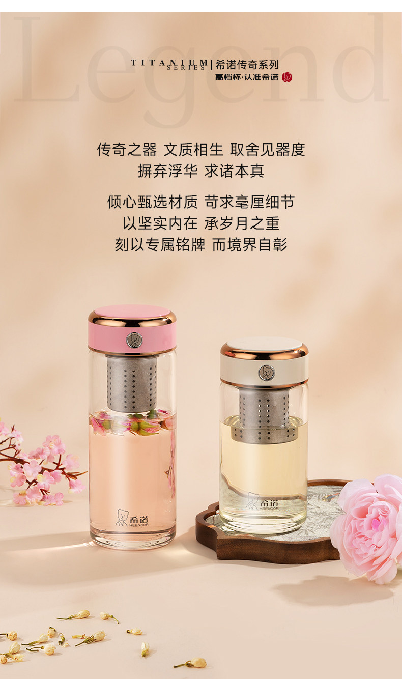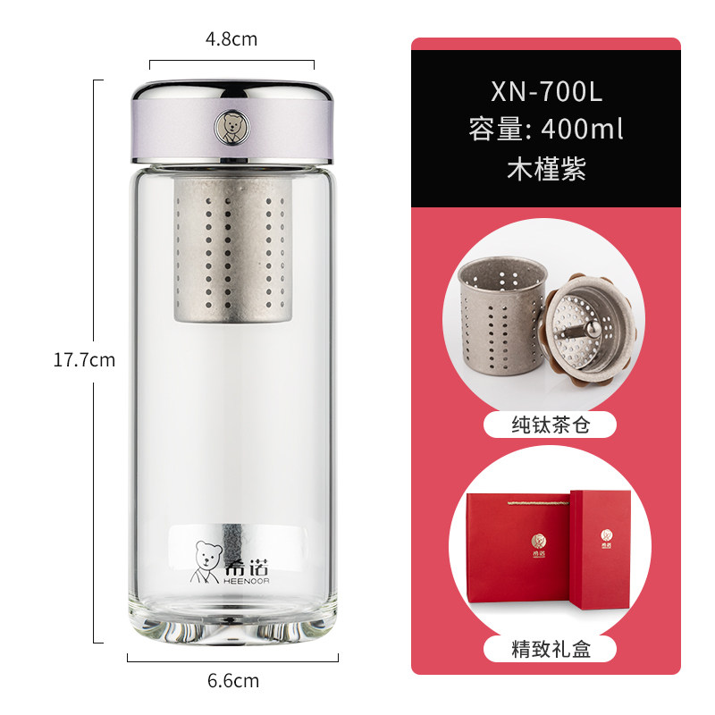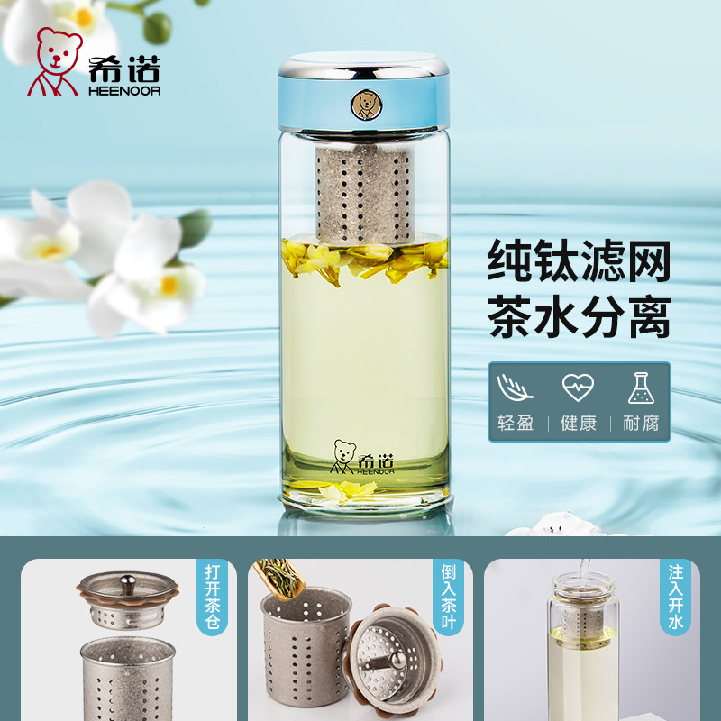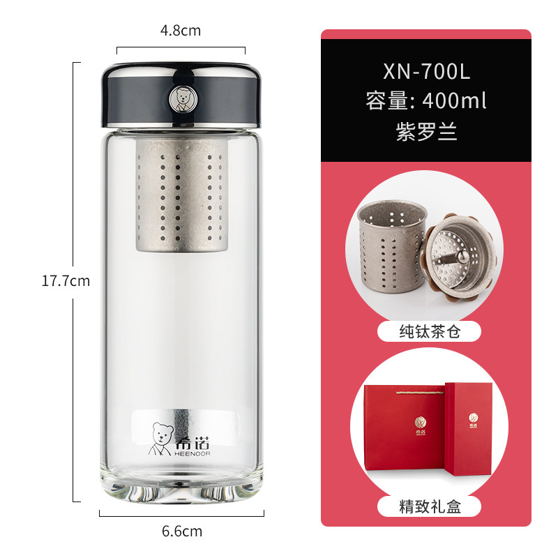 代发希诺(heenoor)玻璃杯男女士抗菌杯单层泡茶杯纯钛滤网大容量水杯茶水分离杯子 【传奇系列】XN-700L