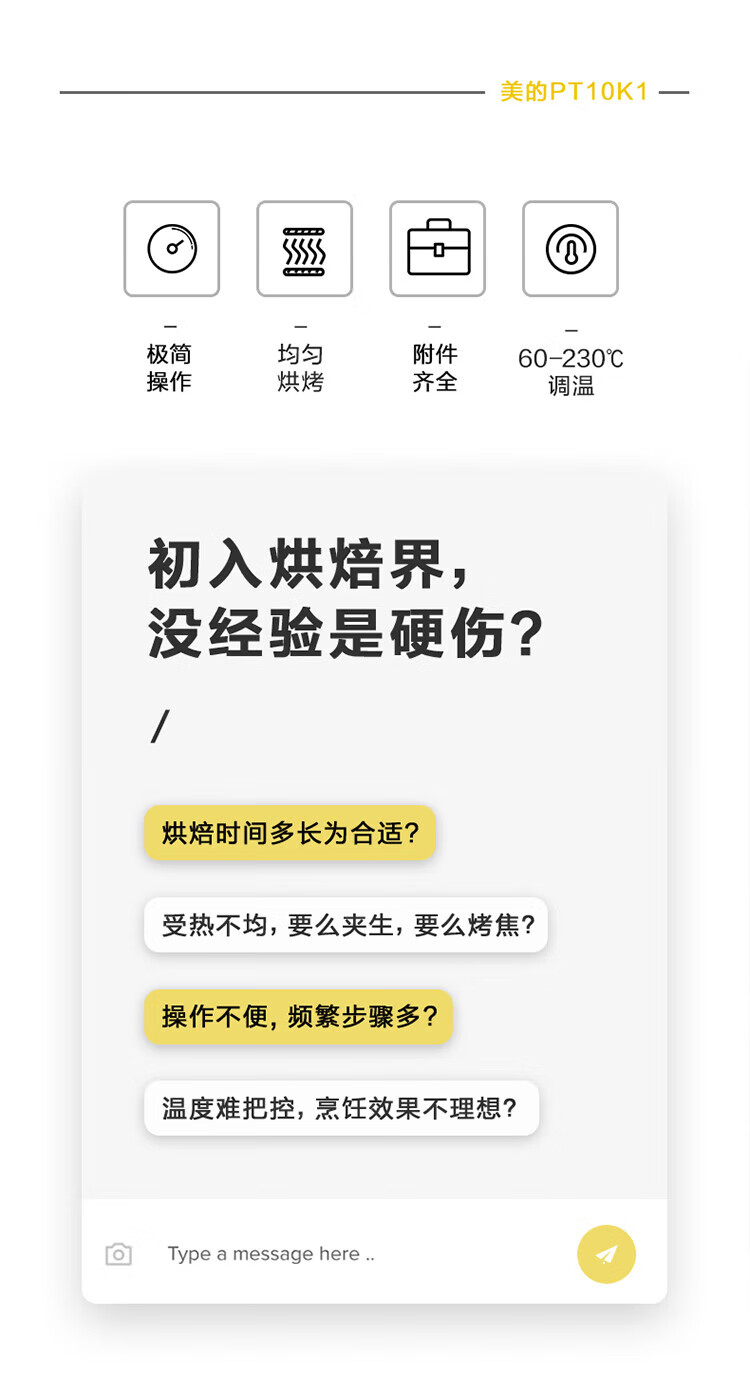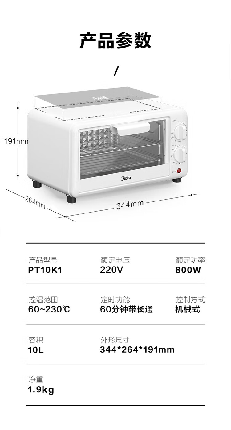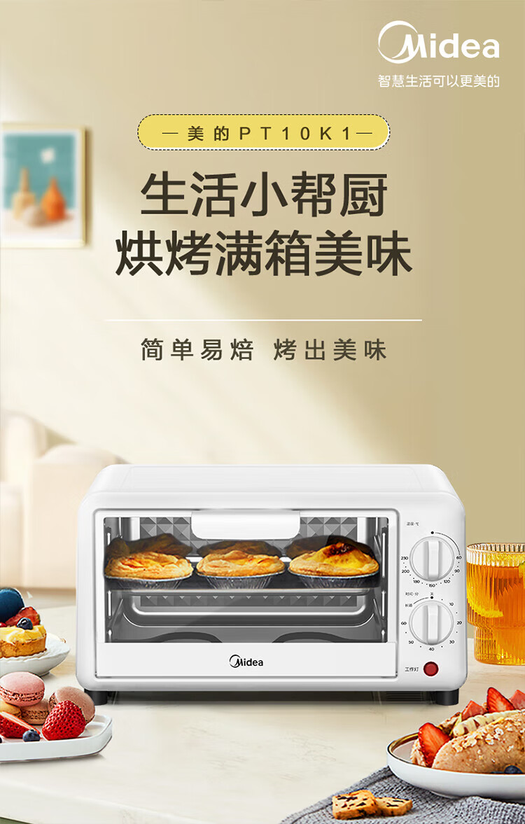 源头美的(Midea)10L家用多功能迷你小烤箱 均匀烘烤/轻巧不占地/广域控温 PT10K1