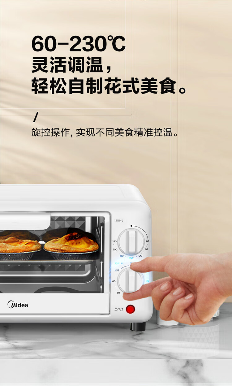 当前位置:首页 > 家用电器 > 厨房小电 > 电烤箱 > 美的(Midea)10L家用多功能迷你小烤箱 均匀烘烤/轻巧不占地/广域控温 PT10K1