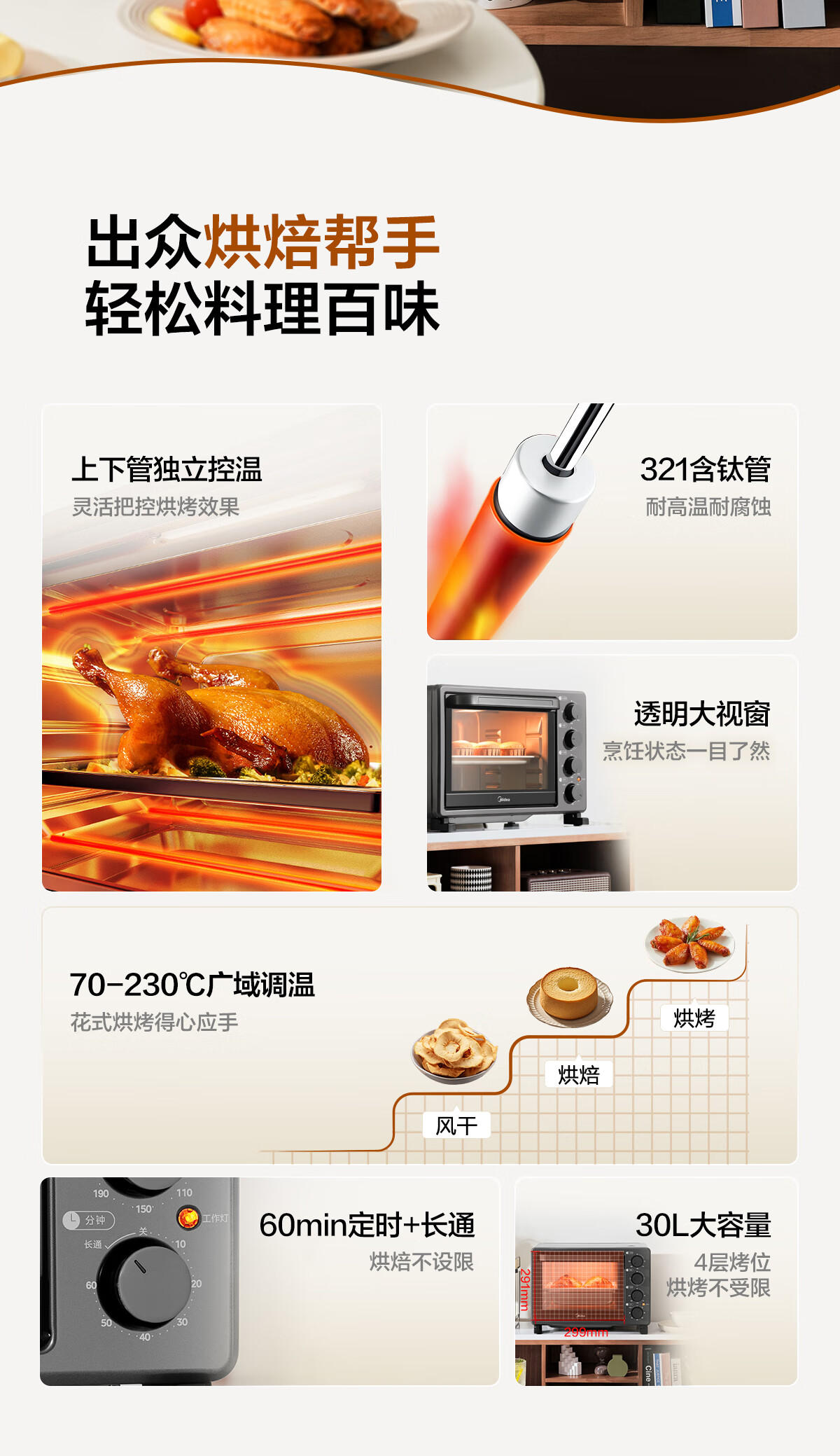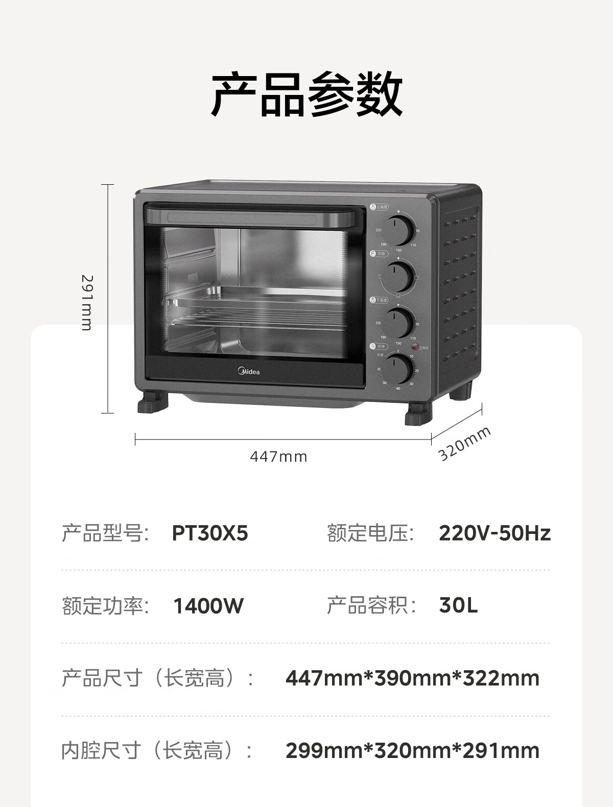 源头美的(Midea)商用电烤箱30升1400W大容量大功率企业采购PT30X5
