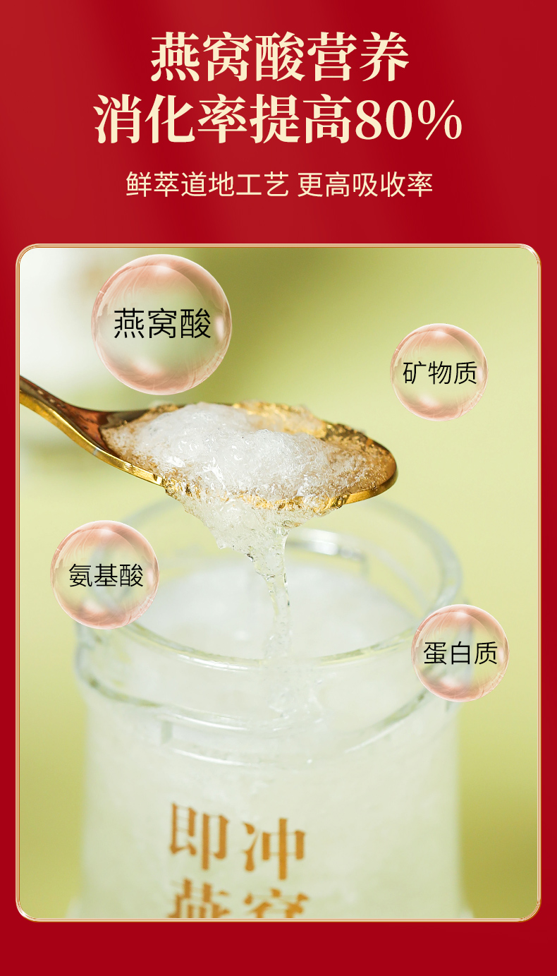 甄选优质燕窝原料,带来宫廷级滋补享受。采用航天级 FD 冻干技术,最大程度锁住燕窝营养,让每一口都饱含滋养能量。