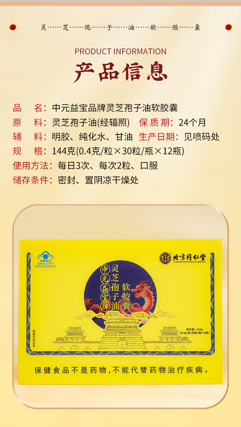 代发北京同仁堂 中元益宝 - 灵芝孢子油 30 粒 * 12 瓶礼盒装
