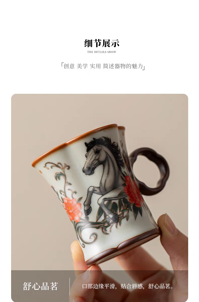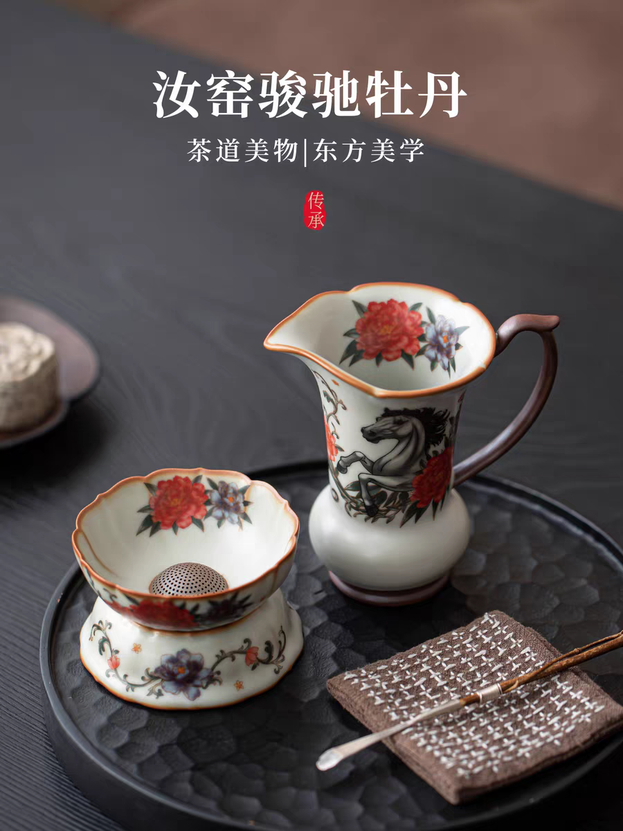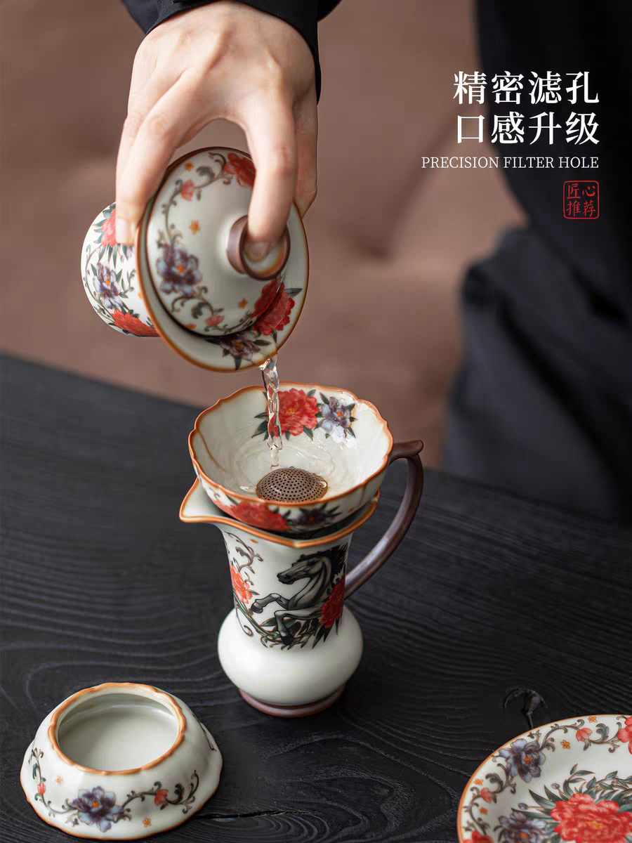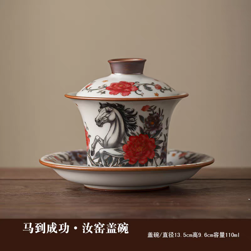 源头鹏翼马到成功亚黄汝瓷茶具PE1
