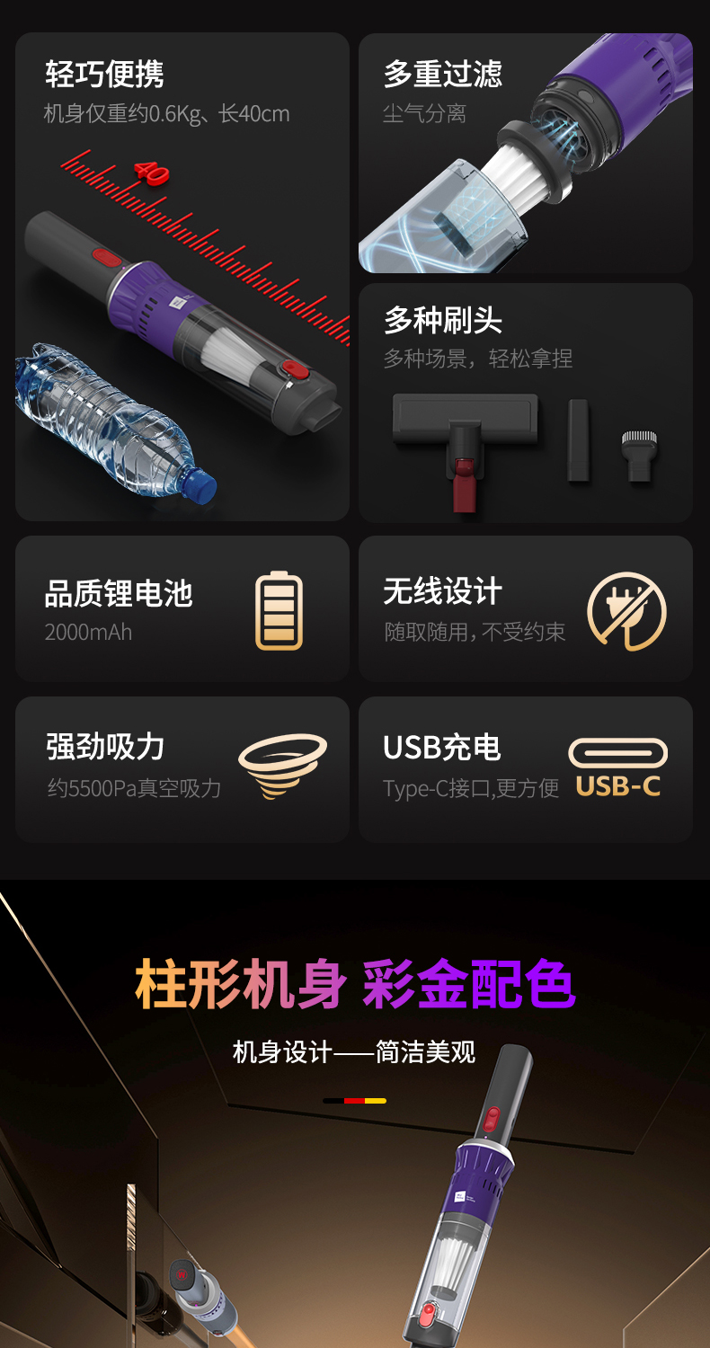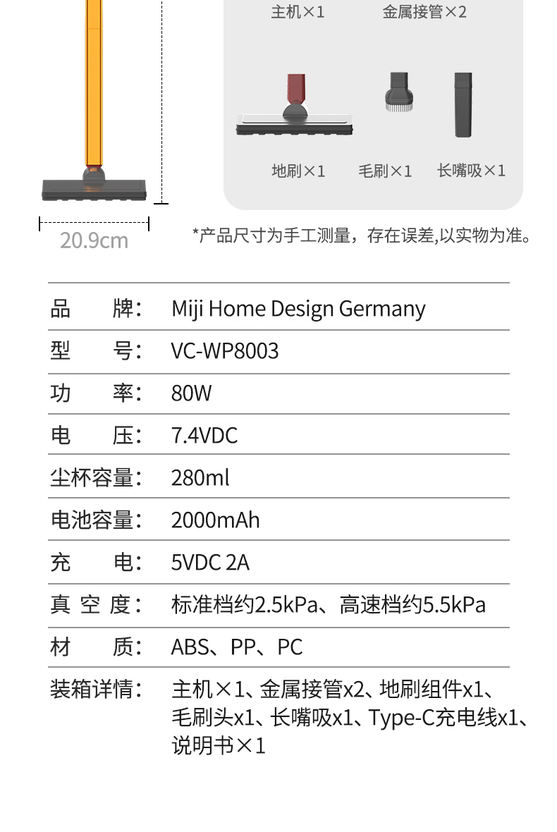 荐代发米技生活 无线手持吸尘器(充电式真空吸尘器) VC-WP8003