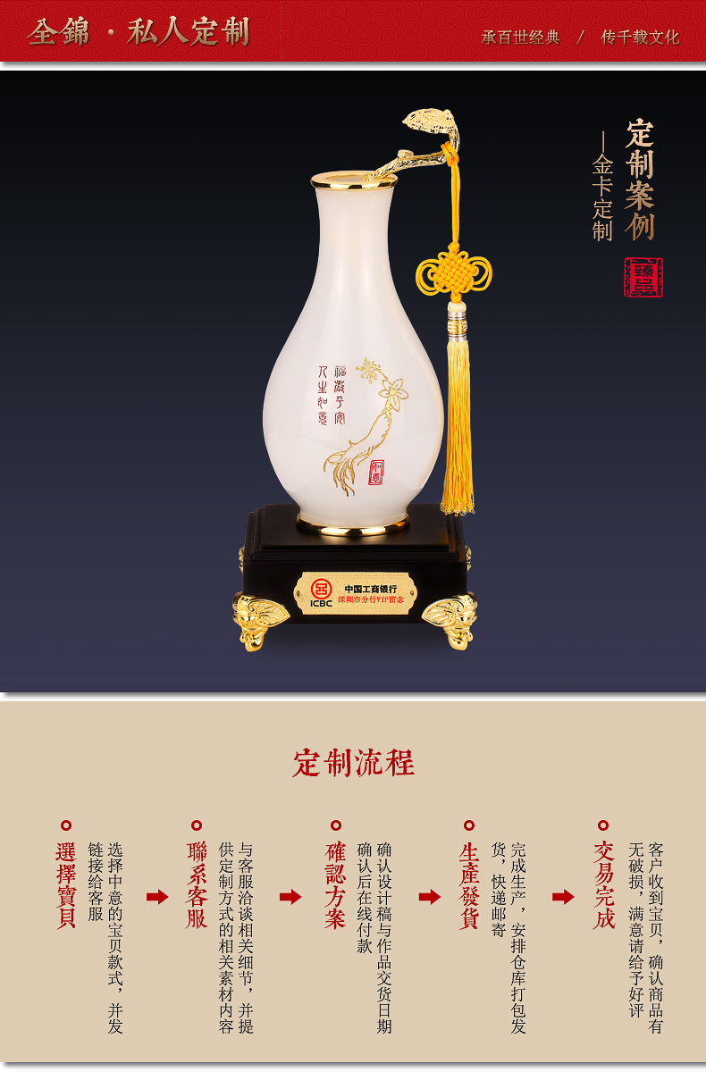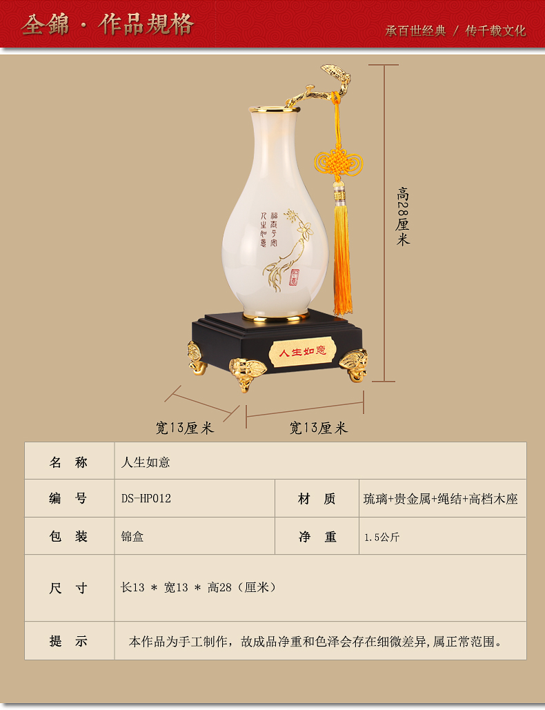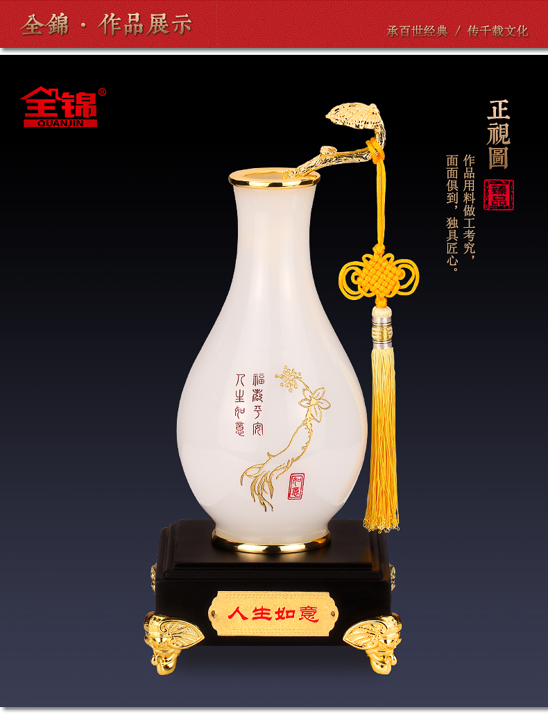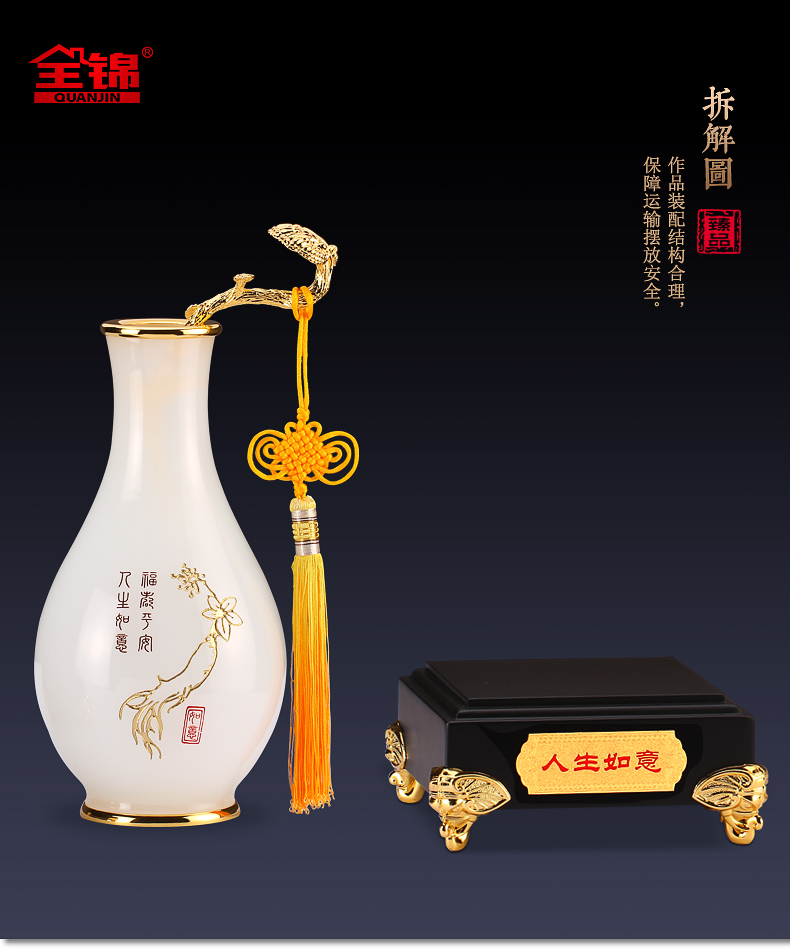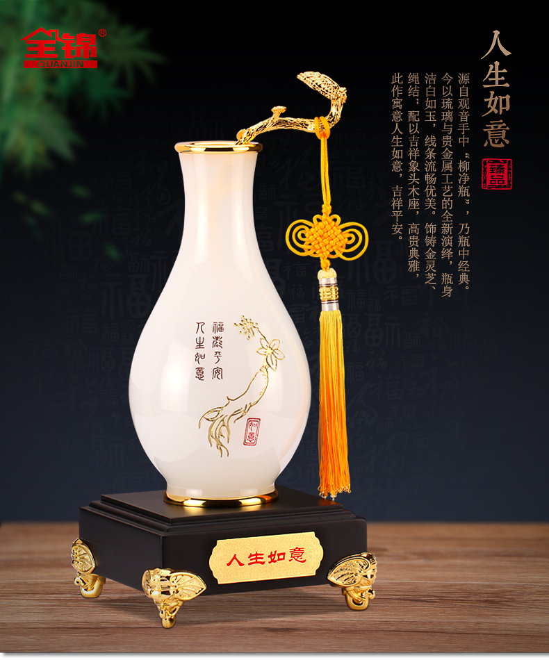 代发全锦人生如意花瓶摆件琉璃工艺品新婚礼品家居装饰玄关酒店床头柜摆放定制