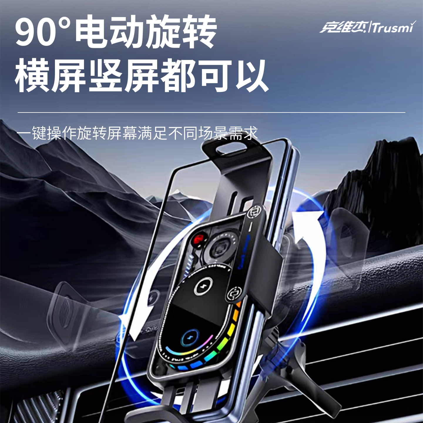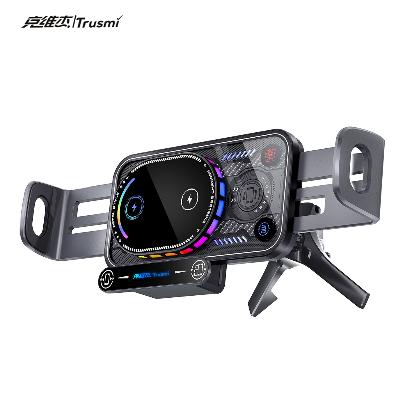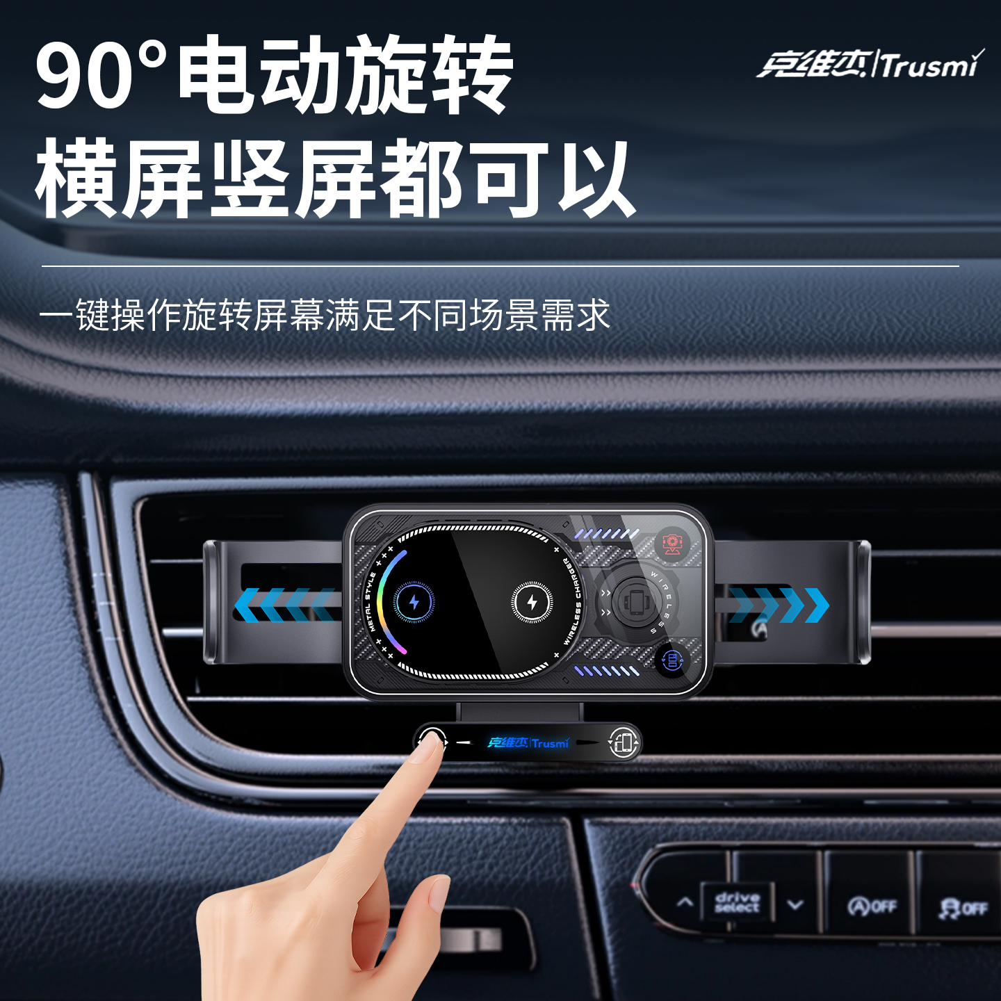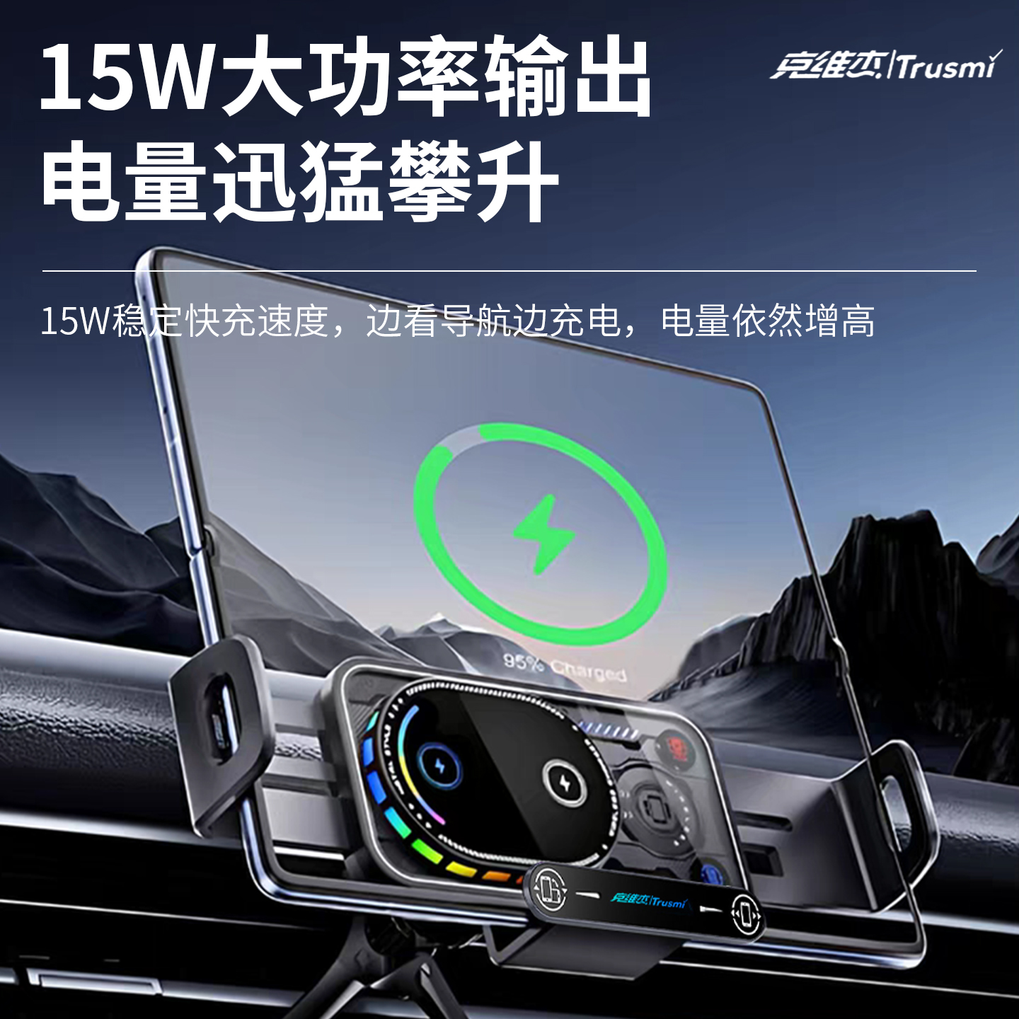 代发克维杰15W无线充智能感应旋转车载支架 灰色CC12-01