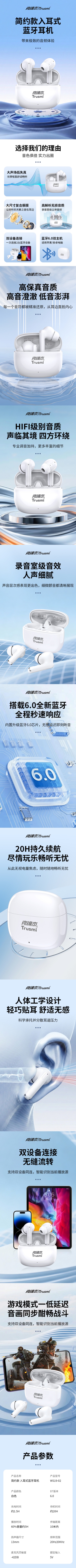 代发克维杰简约款 入耳式蓝牙耳机 白色WS19-02