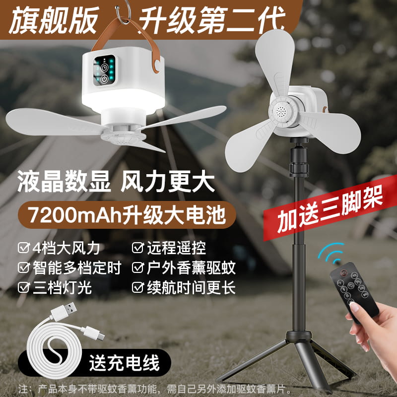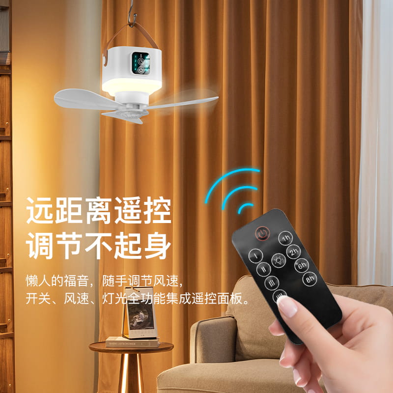 代发聪鲸D02户外露营吊扇7200mah大电池 4档遥控 4档定时3档灯光 可落地可悬吊