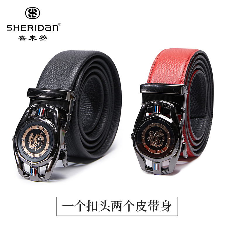 代发SHERIDAN喜来登男士自动扣头层牛皮生肖龙腰带(黑/红双带身皮带)NL240151S