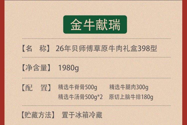 代发贝师傅草原牛肉礼盒398型-金牛献瑞